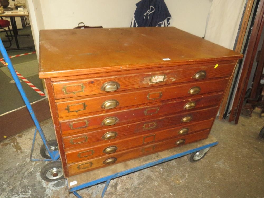 A VINTAGE SIX DRAWER PLAN CHEST, H-73 W-116 D-80 CM