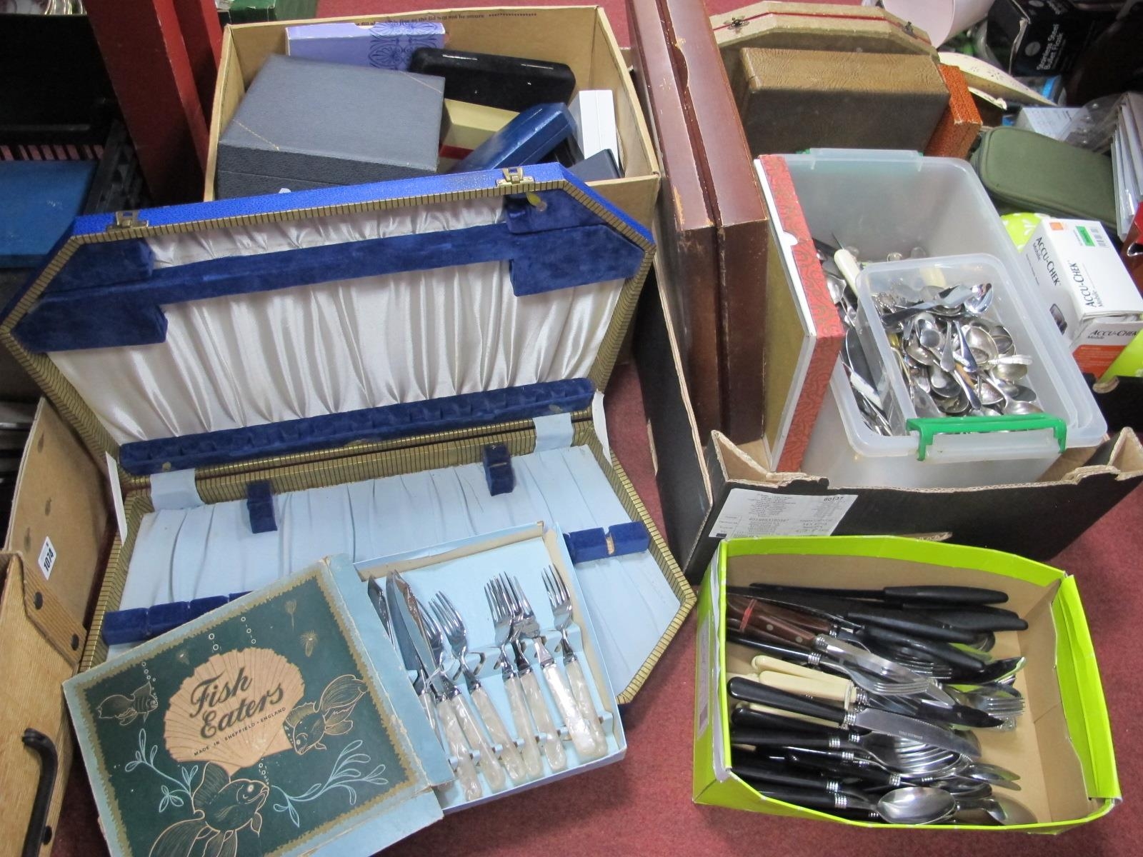 Fish Knife, Forks, Cutlery, empty cutlery boxes, empty jewellery boxes:- Two Boxes.