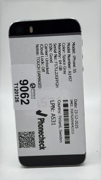 APPLE IPHONE 5S / A531 / 64GB / IMEI: 358762054042315 / I-CLOUD UNLOCKED