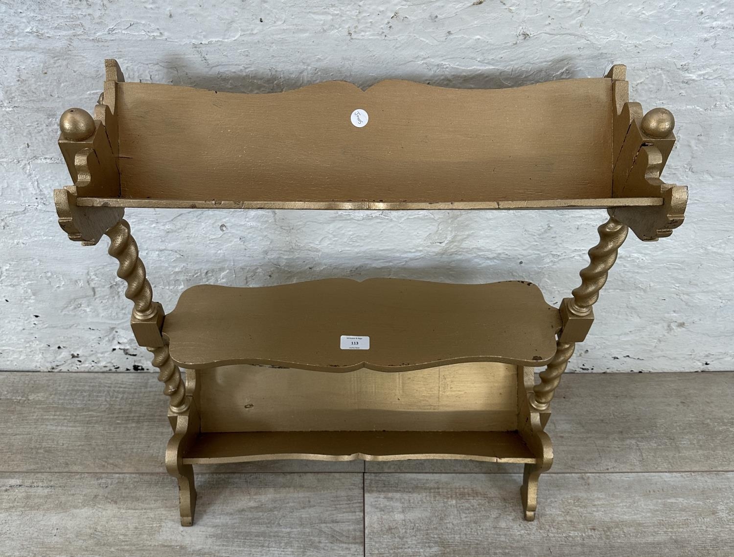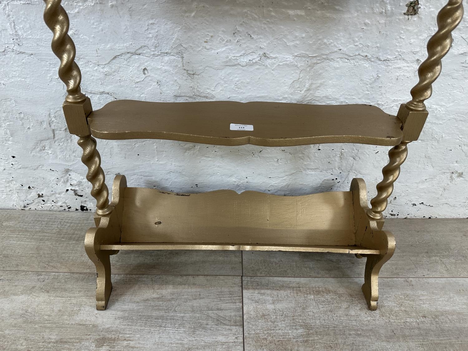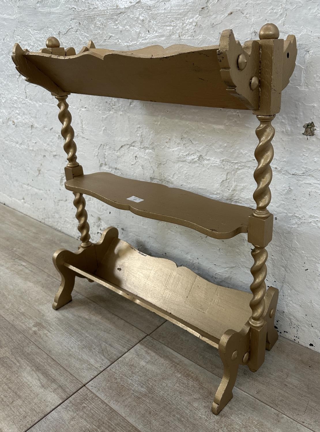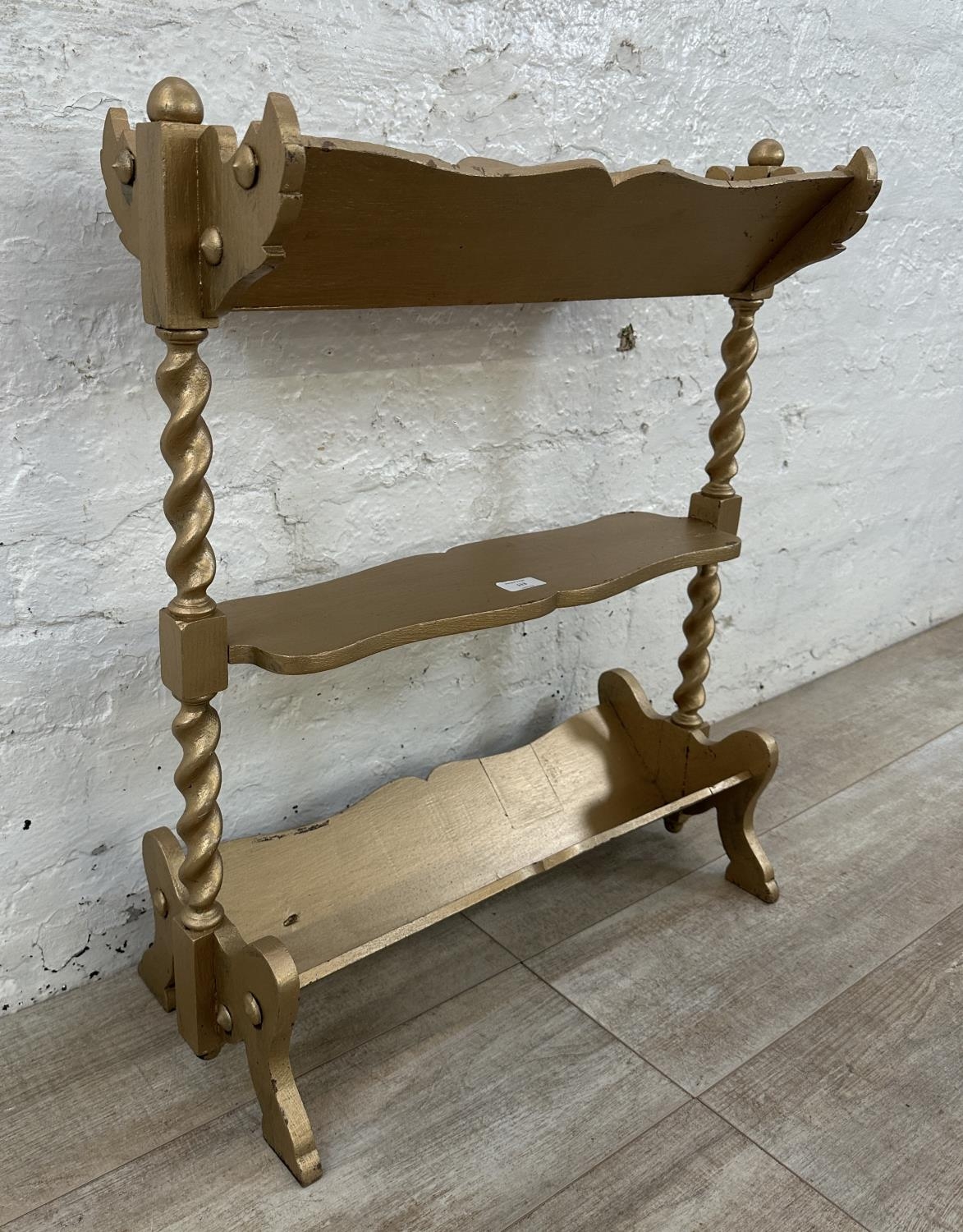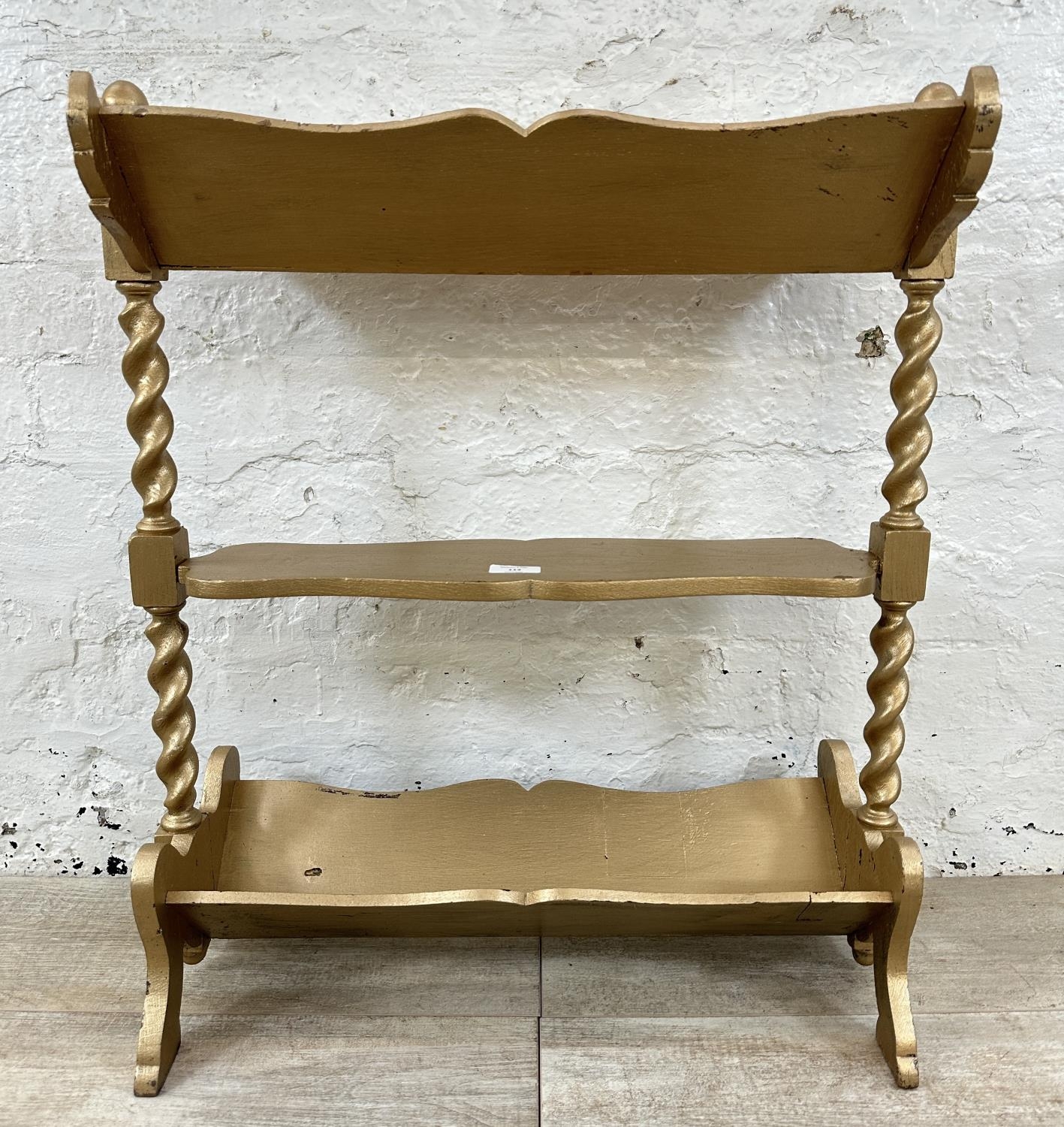 An early 20th century gold painted barley twist three tier book stand - approx. 70cm high x 27cm wide x 56cm long