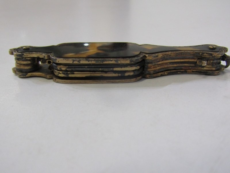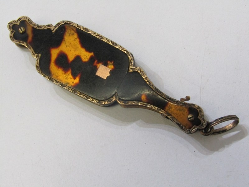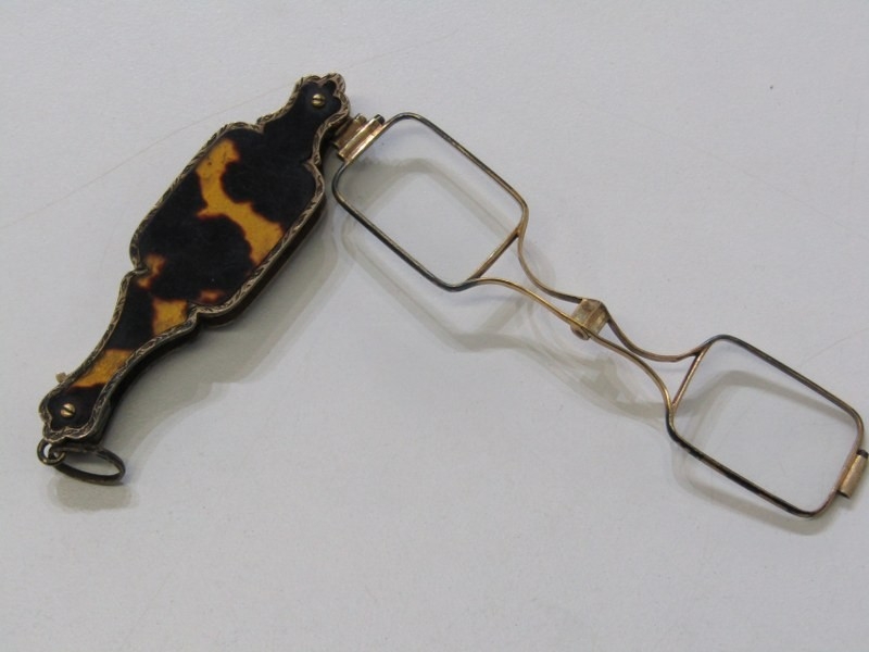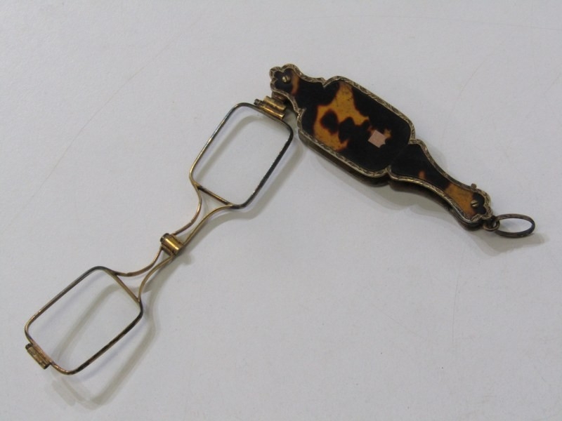 FRENCH LORGNETTES, pair of antique French folding lorgnettes with tortoiseshell decoration, 8cm length