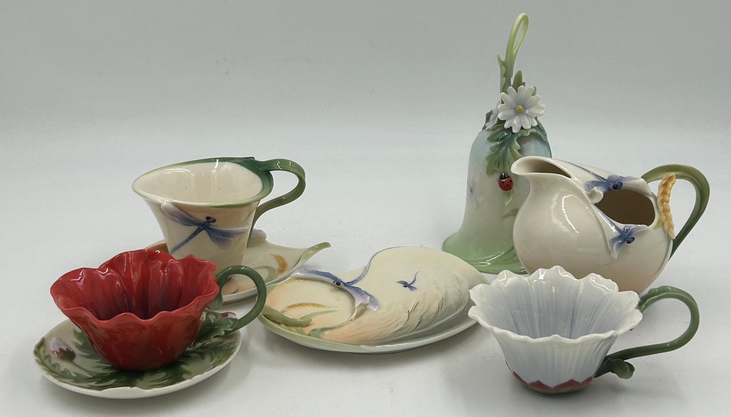 An assortment of 20thC Franz porcelain to include a bell 16cm FZ00335, a poppy pattern cup and saucer F00799Z, jug, cup ,saucer and plate FZ00118 and a cup FZ00793.