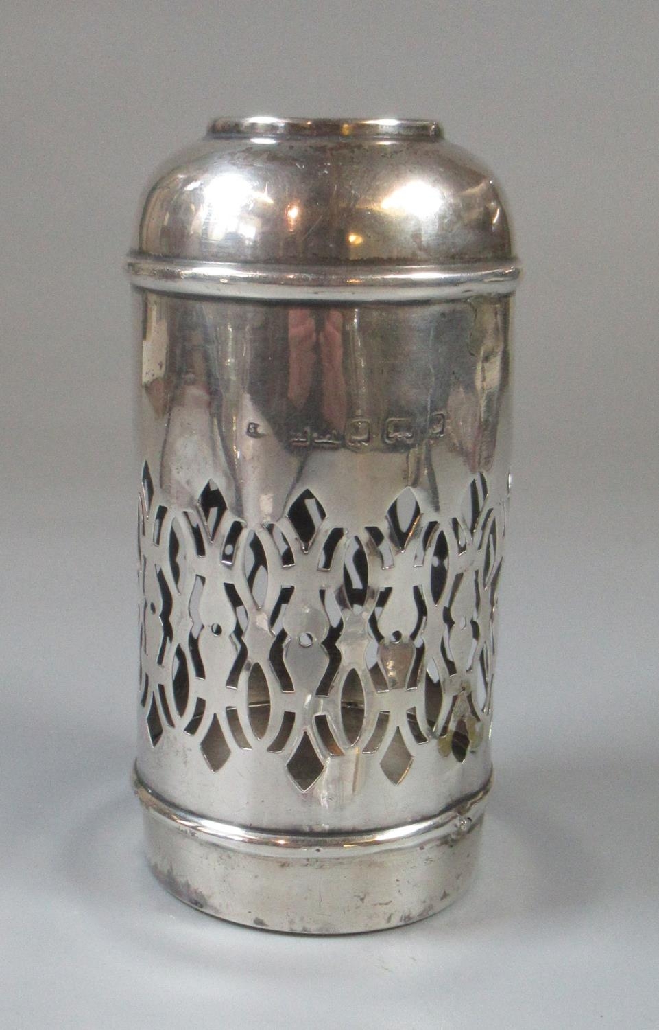 Silver (possibly) scent bottle pierced cover, missing it's lid and glass lining.