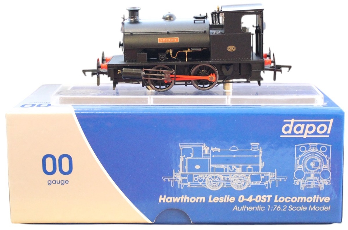 Dapol. OO gauge DCC fitted 4S-024-007D Hawthorne Leslie 0-4-0ST 'Spider' black locomotive, mint in near mint box. (T)