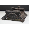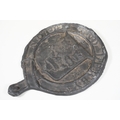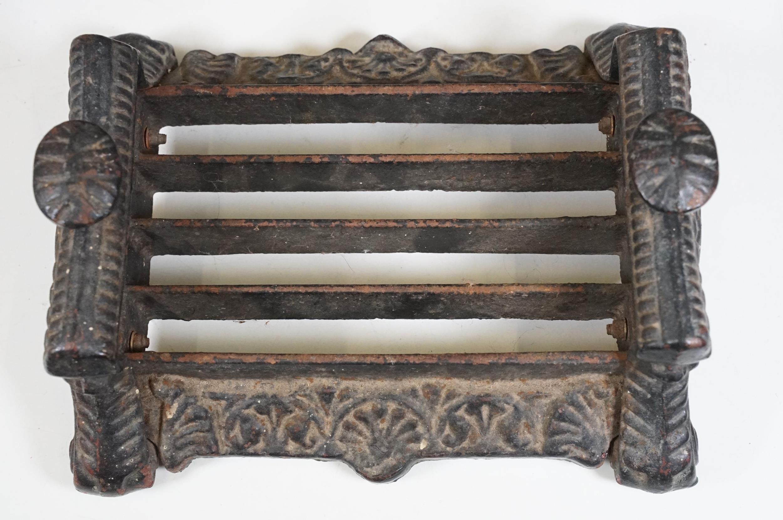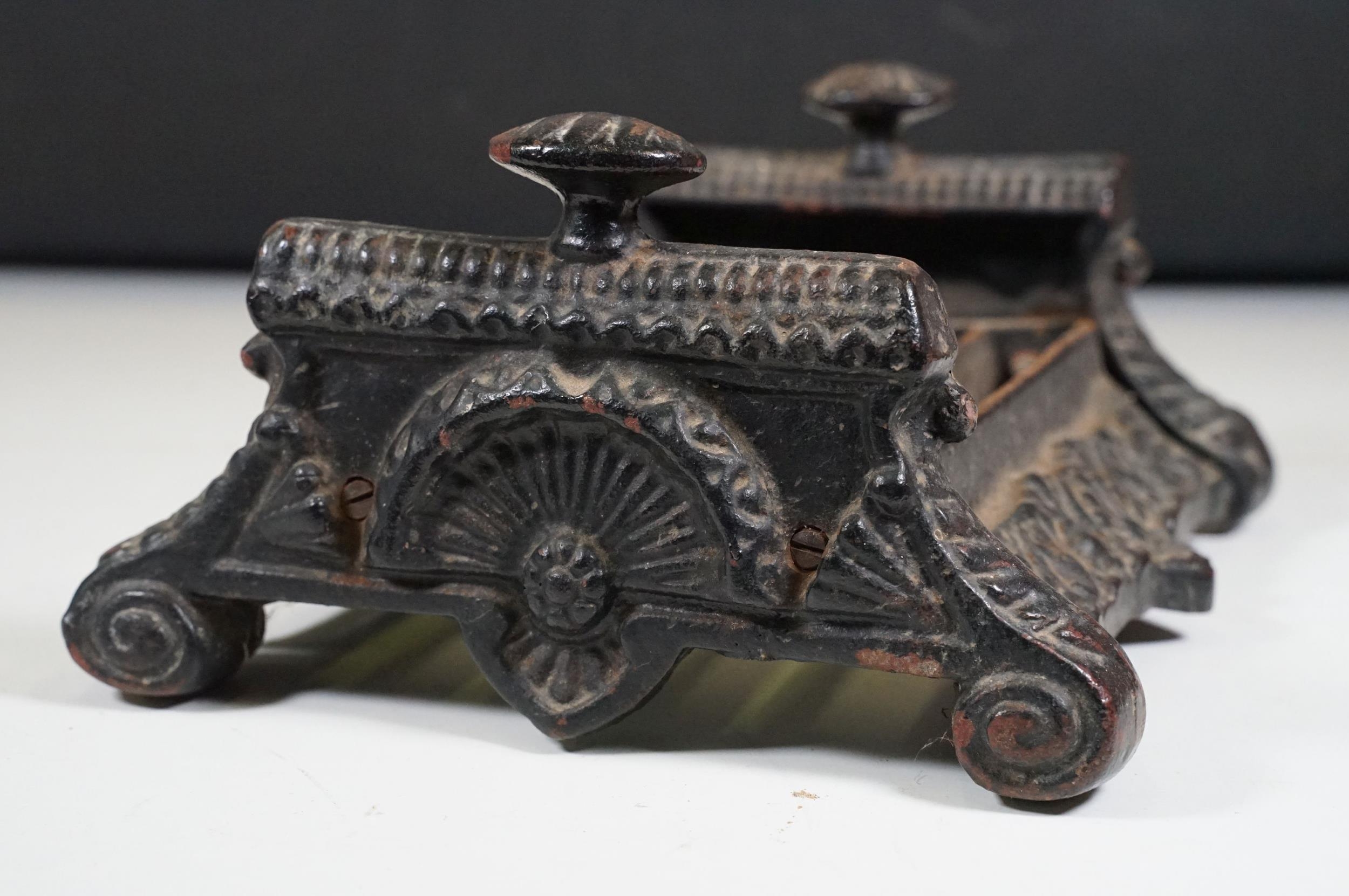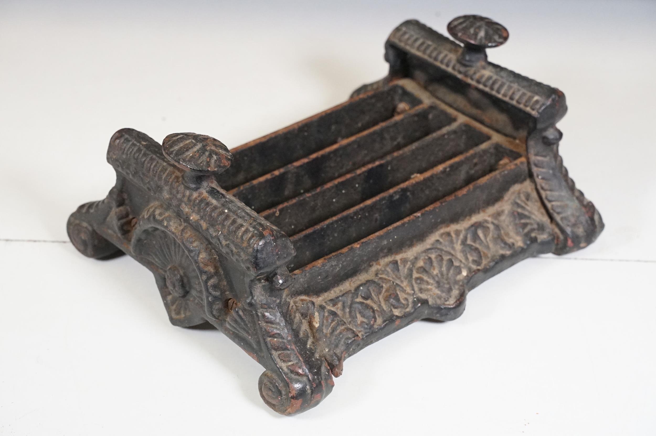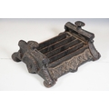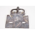 Cast iron collectables to include boot scraper, fire insurance mark plaque '80585' and Notts And Derby fire plaque