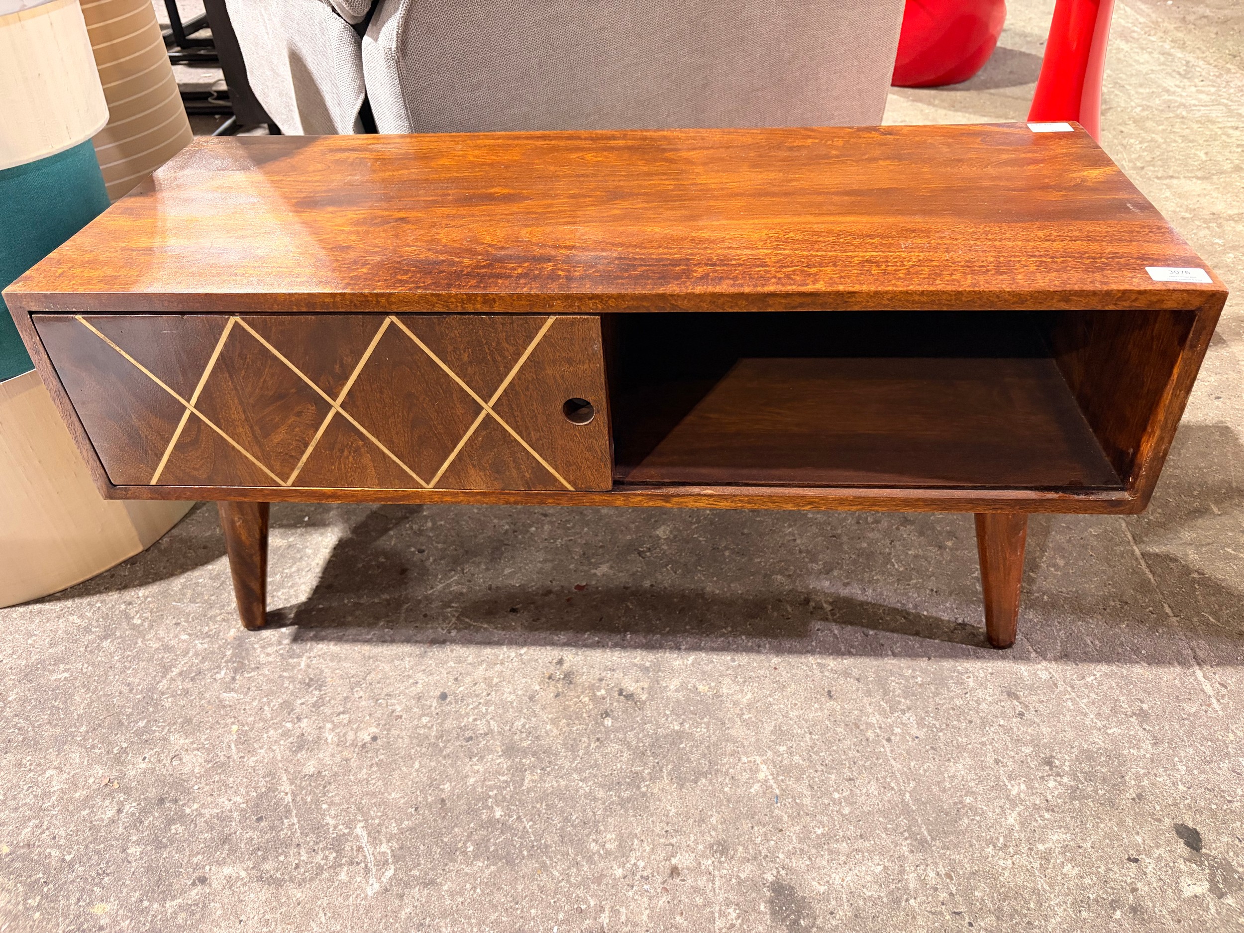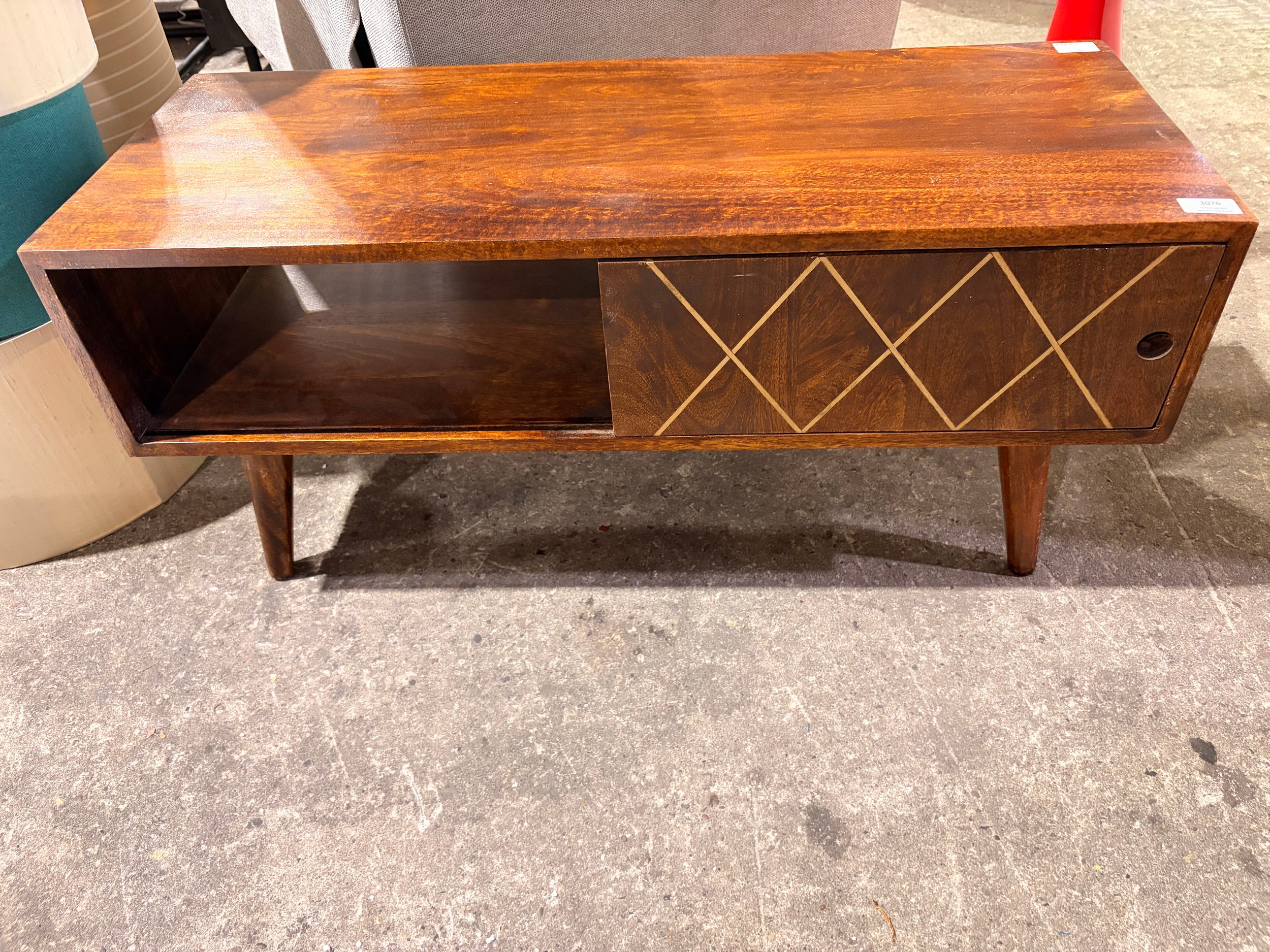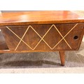 A darkwood sliding door media unit