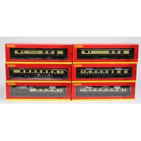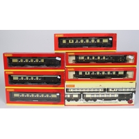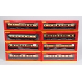 8 Hornby OO Passenger Coaches. 7 BR Hawksworth examples, in Carmine & Cream livery and a Maunsell 1st Class RK (Restaurant Car), in the same livery. The Hawksworth's are a Passenger Brake, 3rd Class, Brake/3rd, Composite Brake, 1st Class and 2x Composite Class. All boxed. Contents VGC-Mint. £70-100