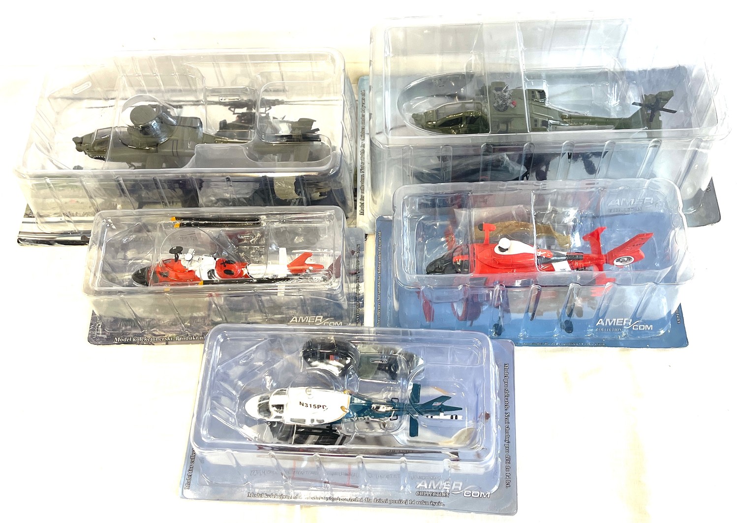 Selection of 5 Amercom Helicopter models includes, Boeing AH-64D, Boeing AH-64a, Eurocopter HH-65c Dolphin,
