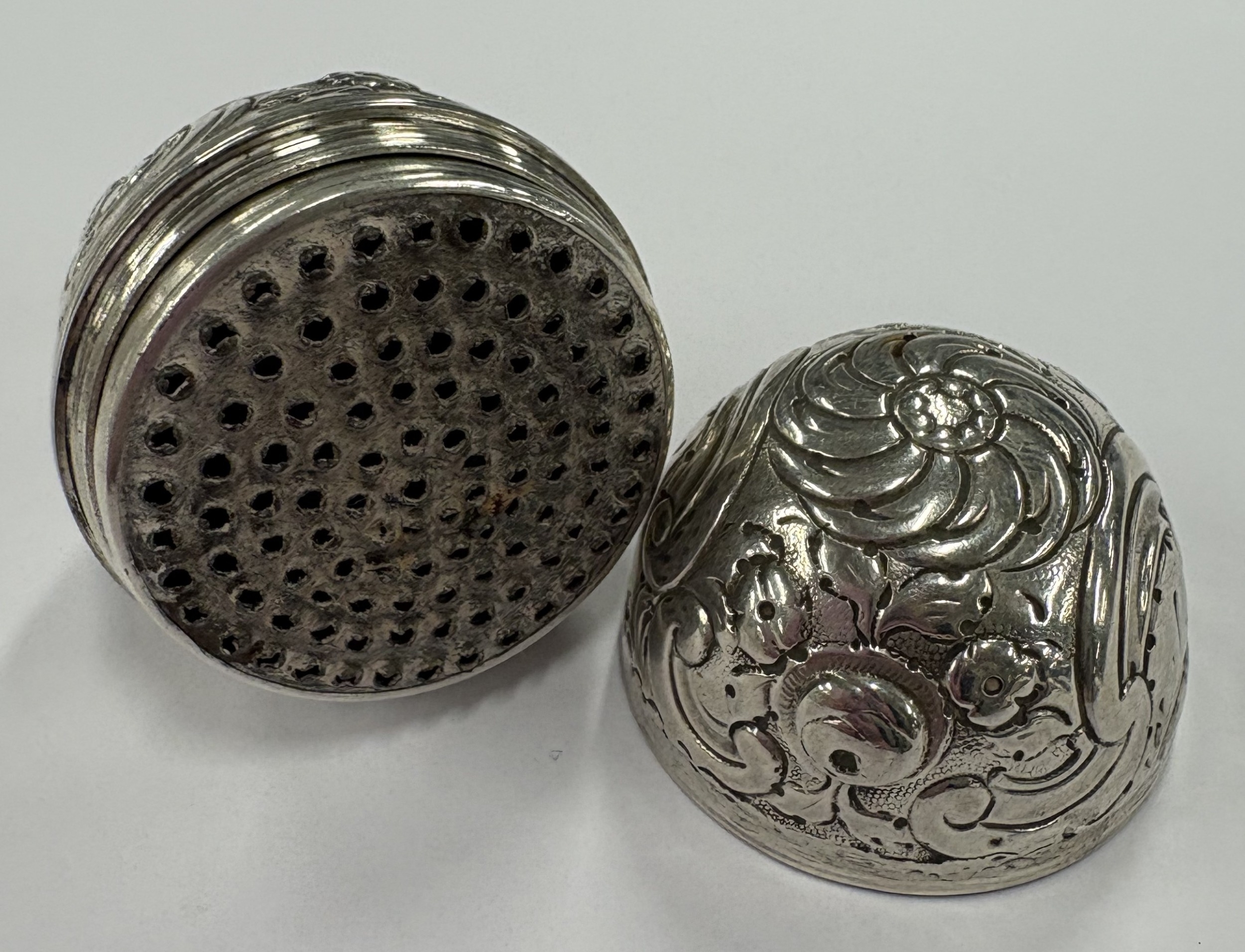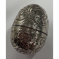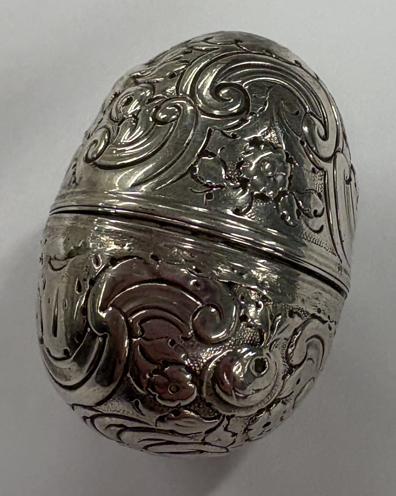 A large 18th Century George III silver nutmeg grater in the form of an egg. Circa 1790. Approx. 20 grams. Est. £250 - £300.