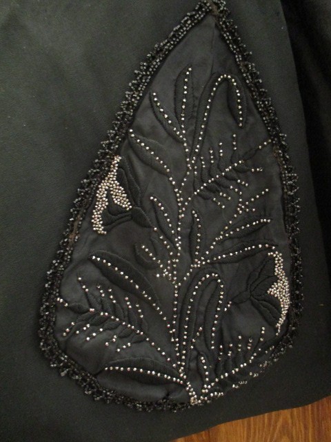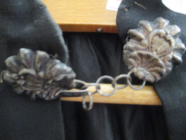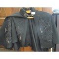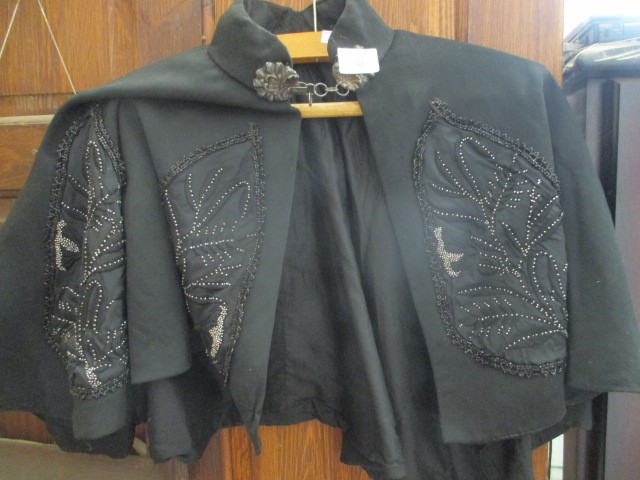 VICTORIAN MOURNING CAPE ALL HAND STITCHED SILVER CLASP & CHAIN, DECORATED WITH PANELS OF MARCASITE BEADS
