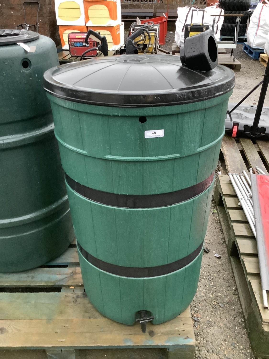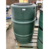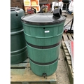A green PVC water butt modelled as a barrel