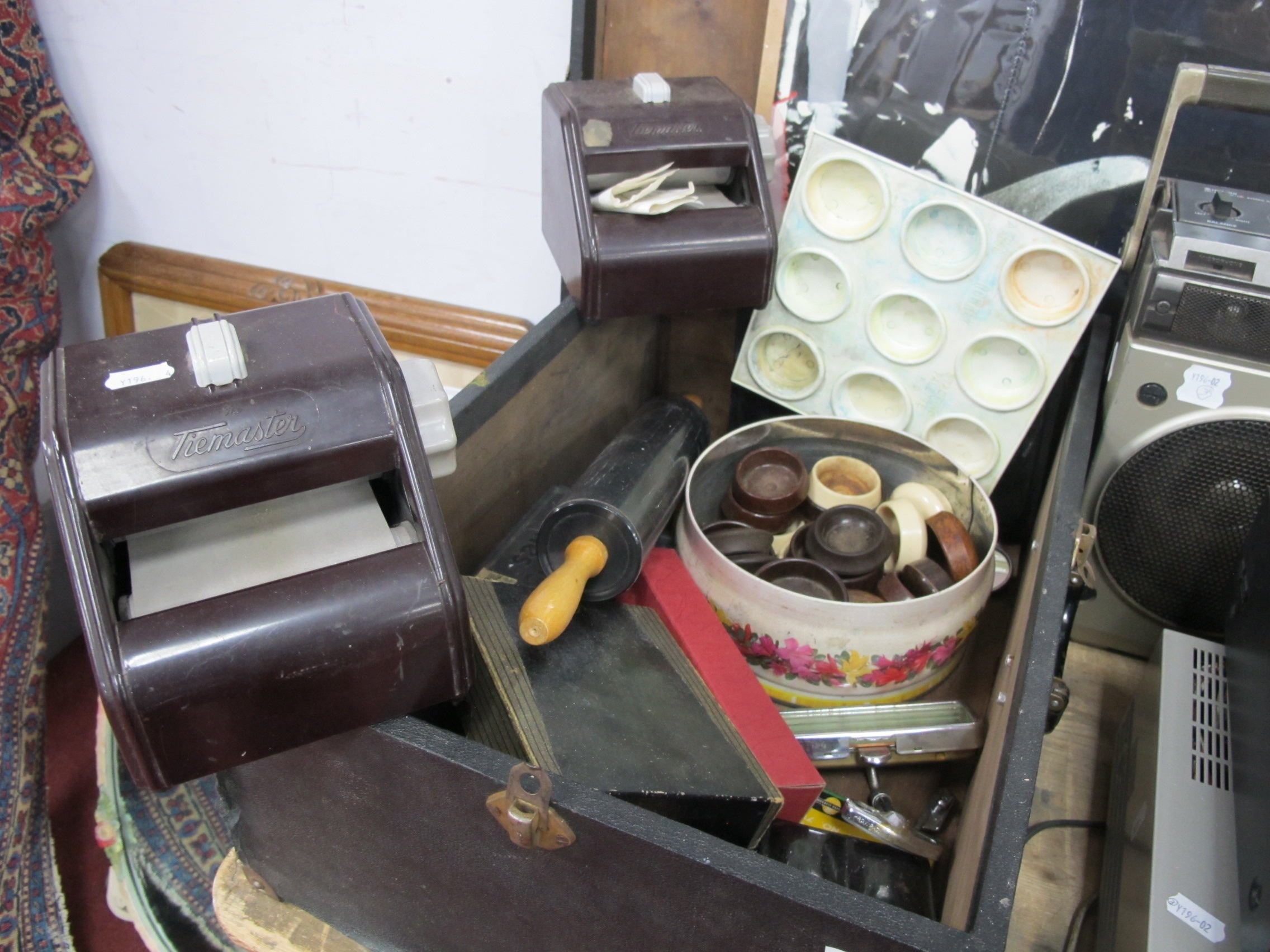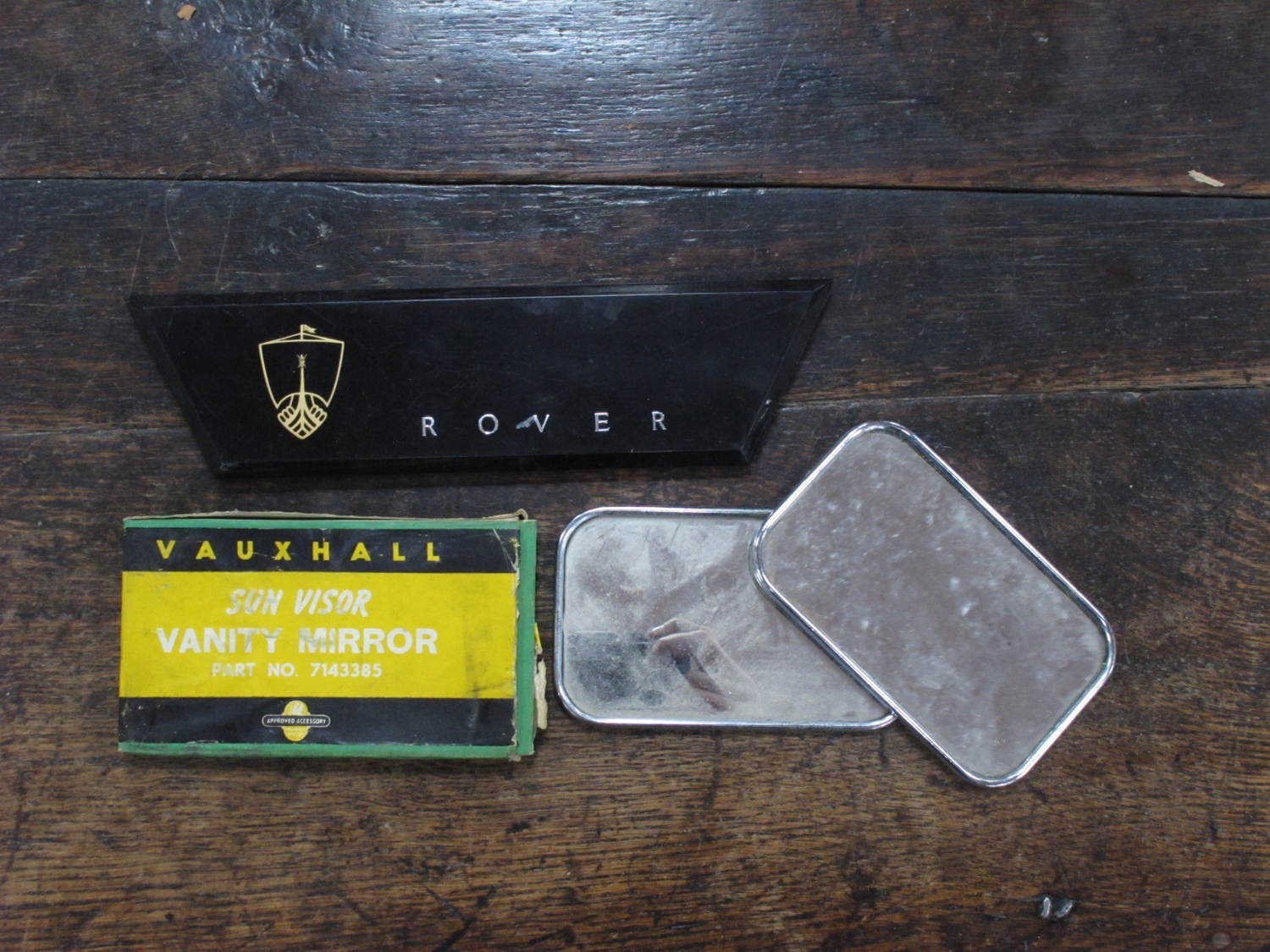 Vauxhall Vanity Mirrors, Rover sign, artists equipmen including Reeves colourbox No 65, Bakelite tiemasters, etc.
