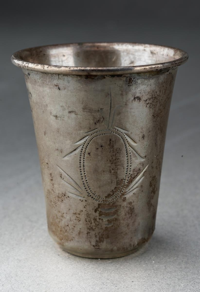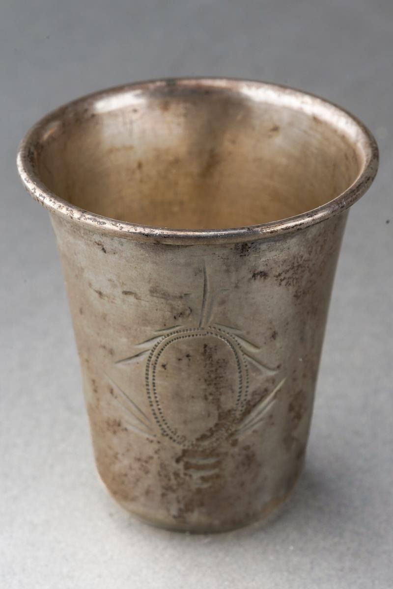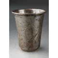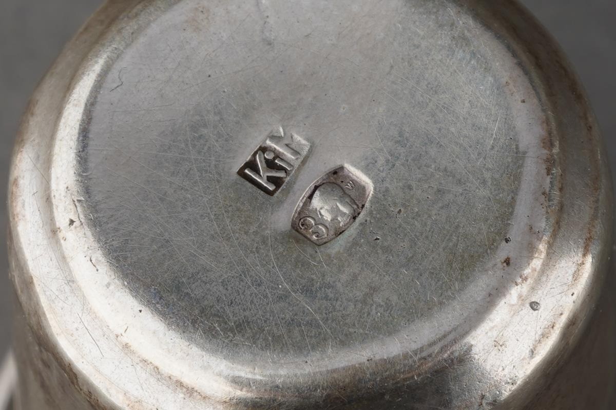 An early 20th Century, circa 1930s, Polish 800 standard silver vodka Tot, engraved with vacant cartouche, hallmarked Warsaw, cstamped KiM probably Wladyslaw Krupski & Jan Matulewicz, weight approx 10.5 grams [1]