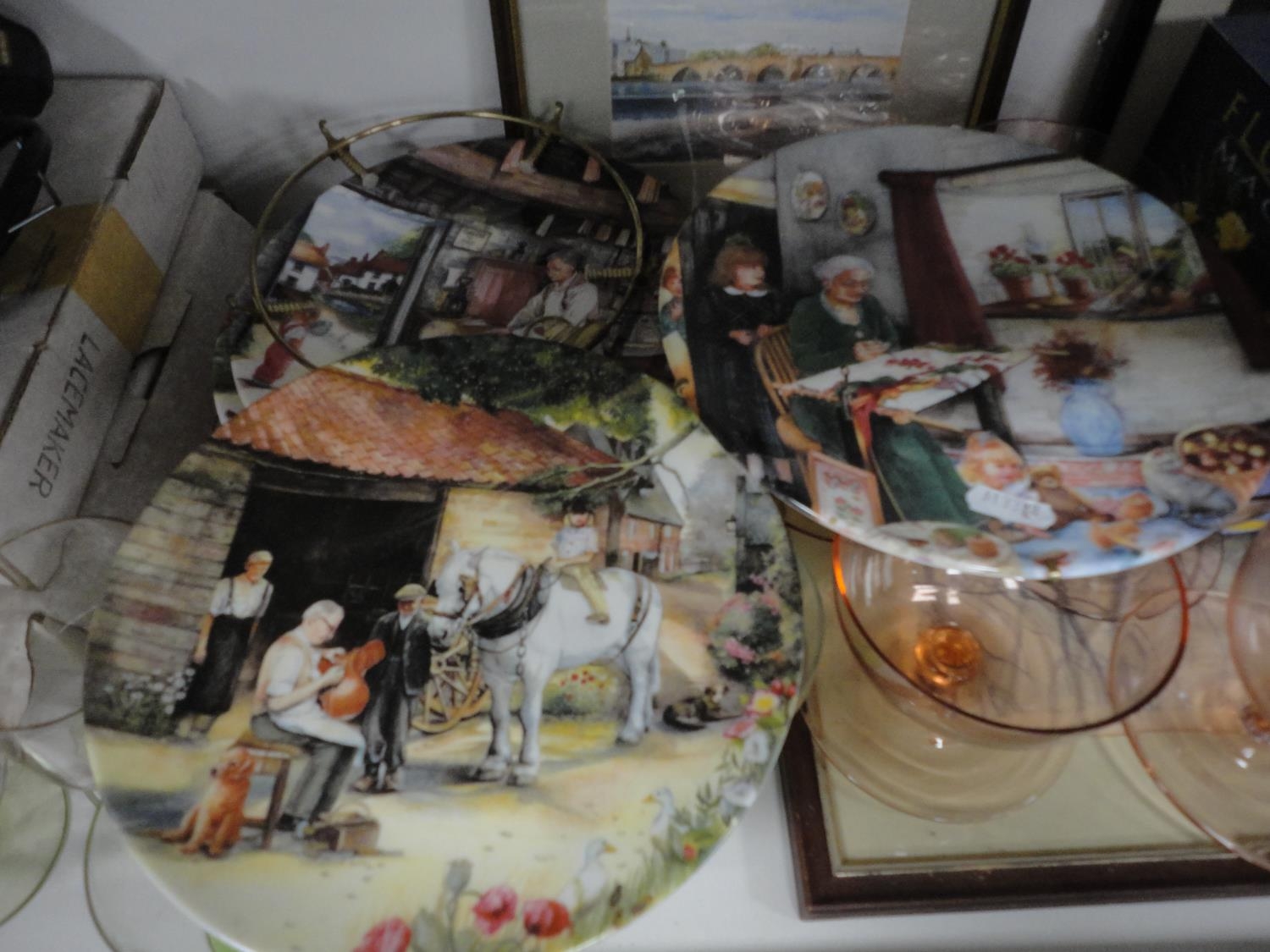 Collection of grapefruit dishes, collector's plates, colour print etc.