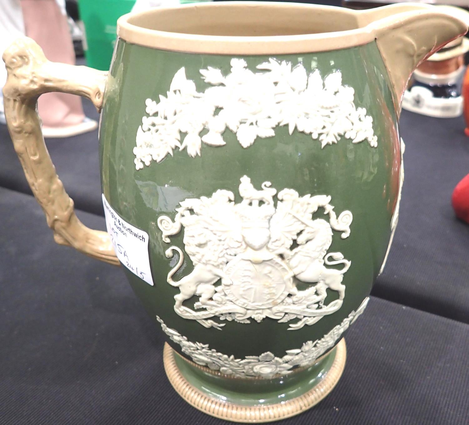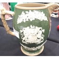 Copeland late Spode jug commemorating the Diamond Jubilee of Queen Victoria, sprigged in white with a portrait and cypher on a green ground, H: 16 cm. No visible chips, cracks or restoration. P&P Group 1 (£14+VAT for the first lot and £1+VAT for subsequent lots)