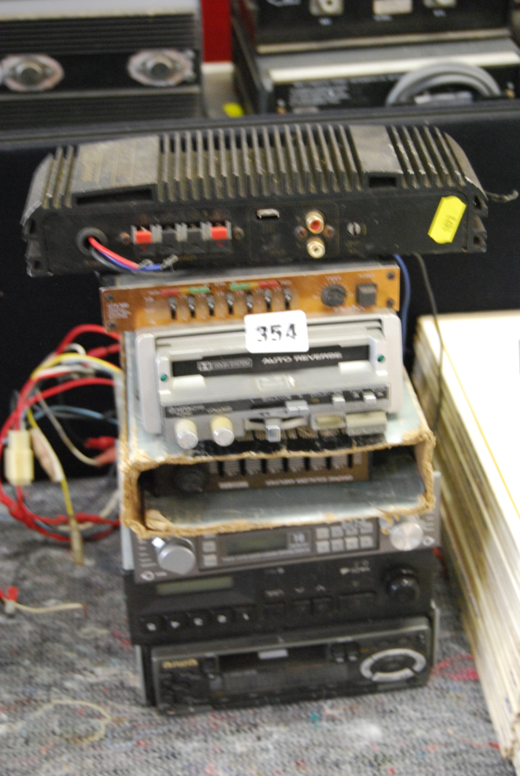 5 VINTAGE CAR RADIOS INCLUDING AIWA, HAVARD GRAPHIC EQUILISER, HITACHI, AUDIOLINE, 18 STATION MEMORY RADIO/CASSETTE PLAYER, ETC