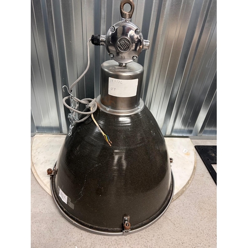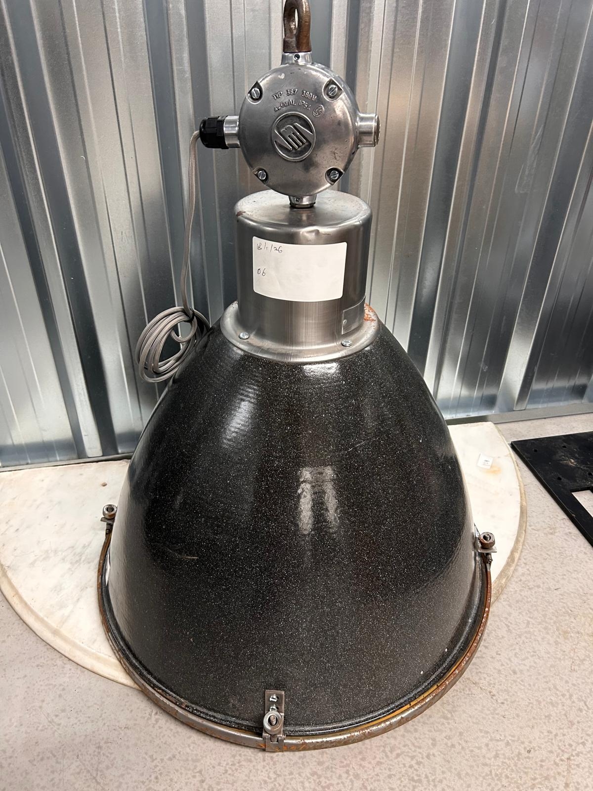 1 Czech Sawmill Pendant Light with original vintage enamel - Industrial Lamps - retail price E400+ A large vintage downlighter reclaimed from communist era industrial buildings across the Czech Republic. These lights were once used extensively across the former Eastern Bloc. though most have now fallen to the wrecking ball. The original vintage enamel has been toughened with glass diffuser.