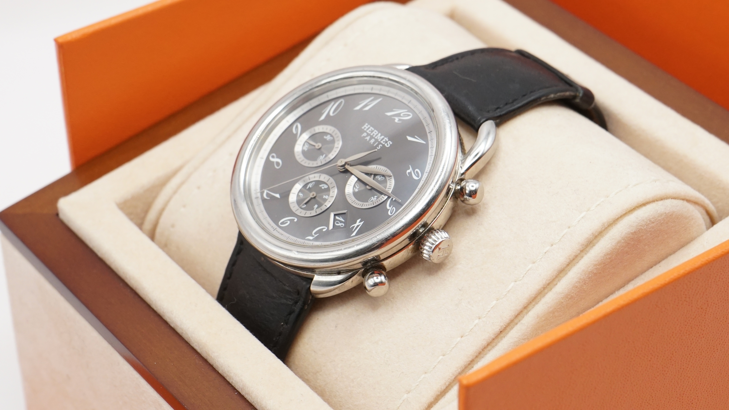Hermès Arceau Chronographe Ref AR4.910. Stainless Steel Chronograph Wristwatch.
