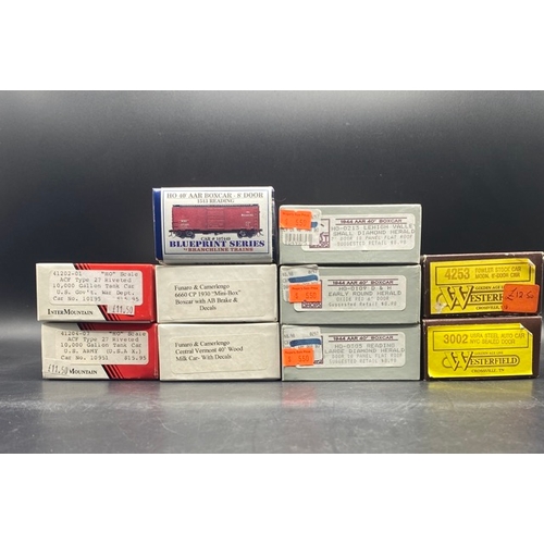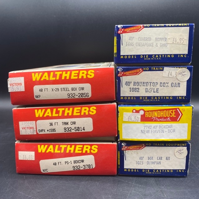 7 North American Outline HO unbuilt-kits Rolling Stock. Appearing complete from Walthers (3) and Roundhouse Products (4) as shown