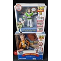 A delightful Toy Story 4 collectible set, featuring the iconic Buzz Lightyear by Mattel (RRP of £38 at toykingdom.co.uk) and Sheriff Woody figures (RRP of £24.99 at toydip.com). Capturing the essence of Pixar's animation, this pristine duo is a must-have for enthusiasts of the cherished franchise.