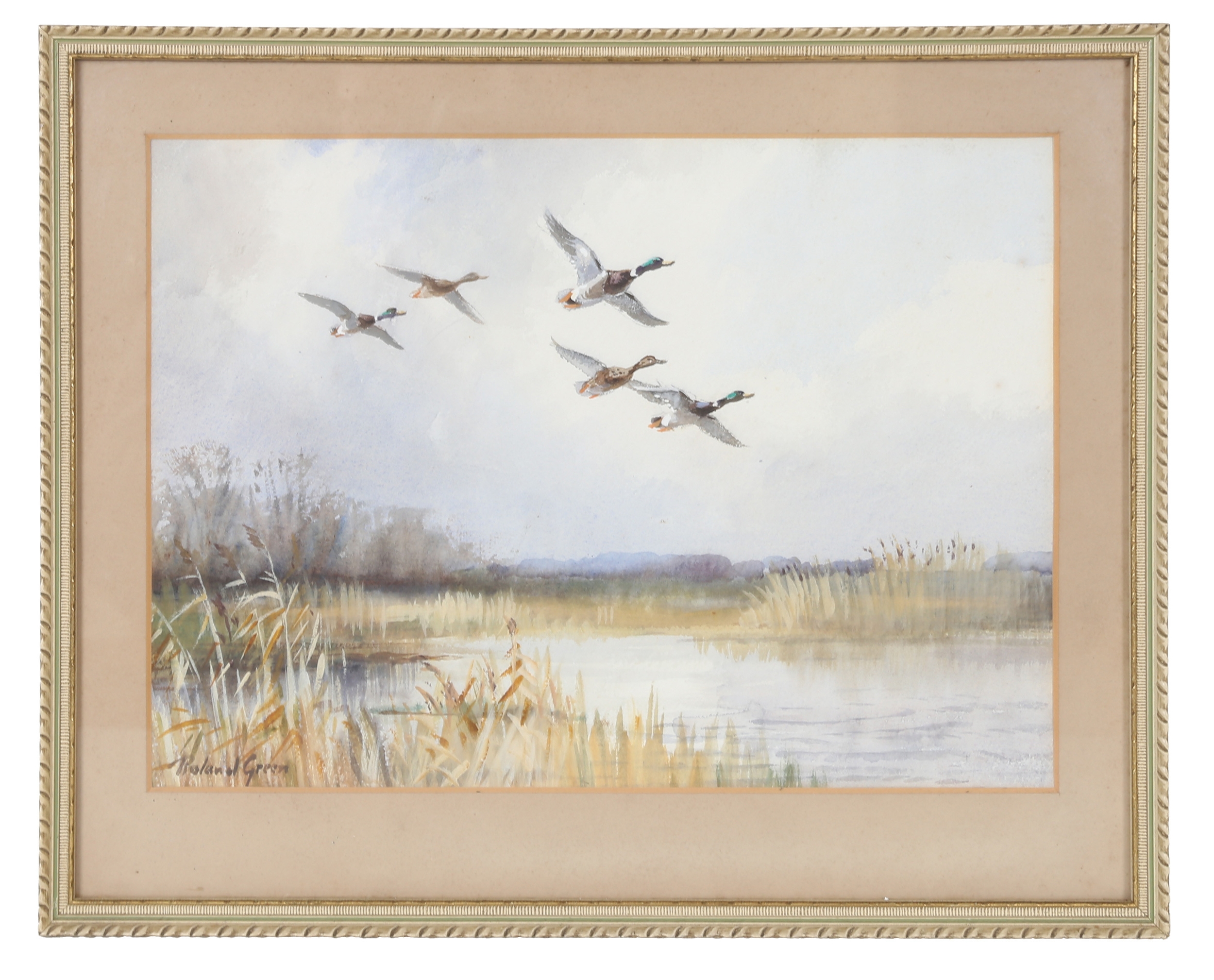 ROLAND GREEN (BRITISH, 1890-1972). Mallard in Flight