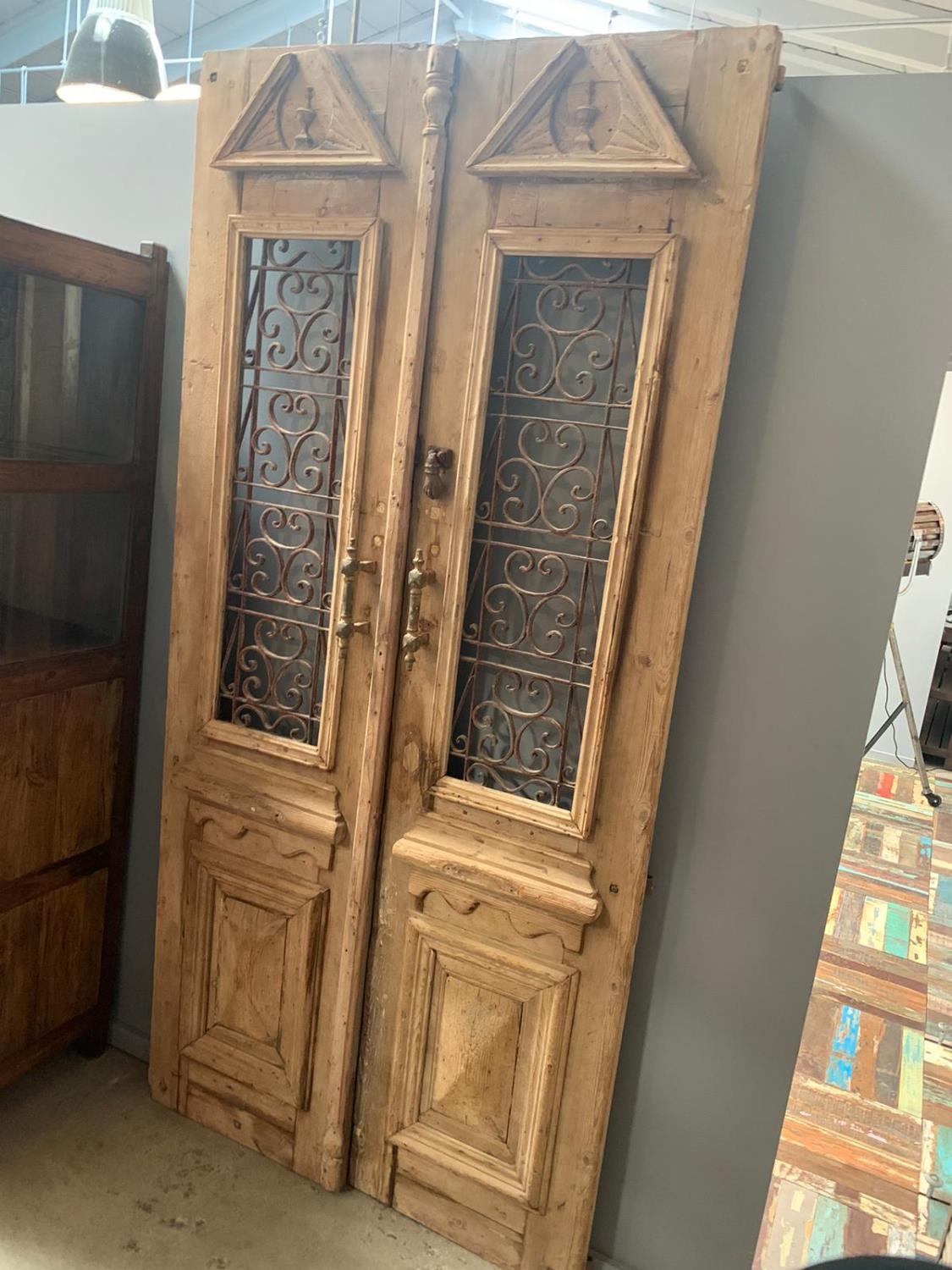EXCEPTIONAL PAIR ANTIQUE STRIPPED EGYPTIAN ORNATE DOORS WITH IRONWORK 250CM X 120CM