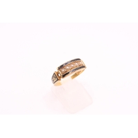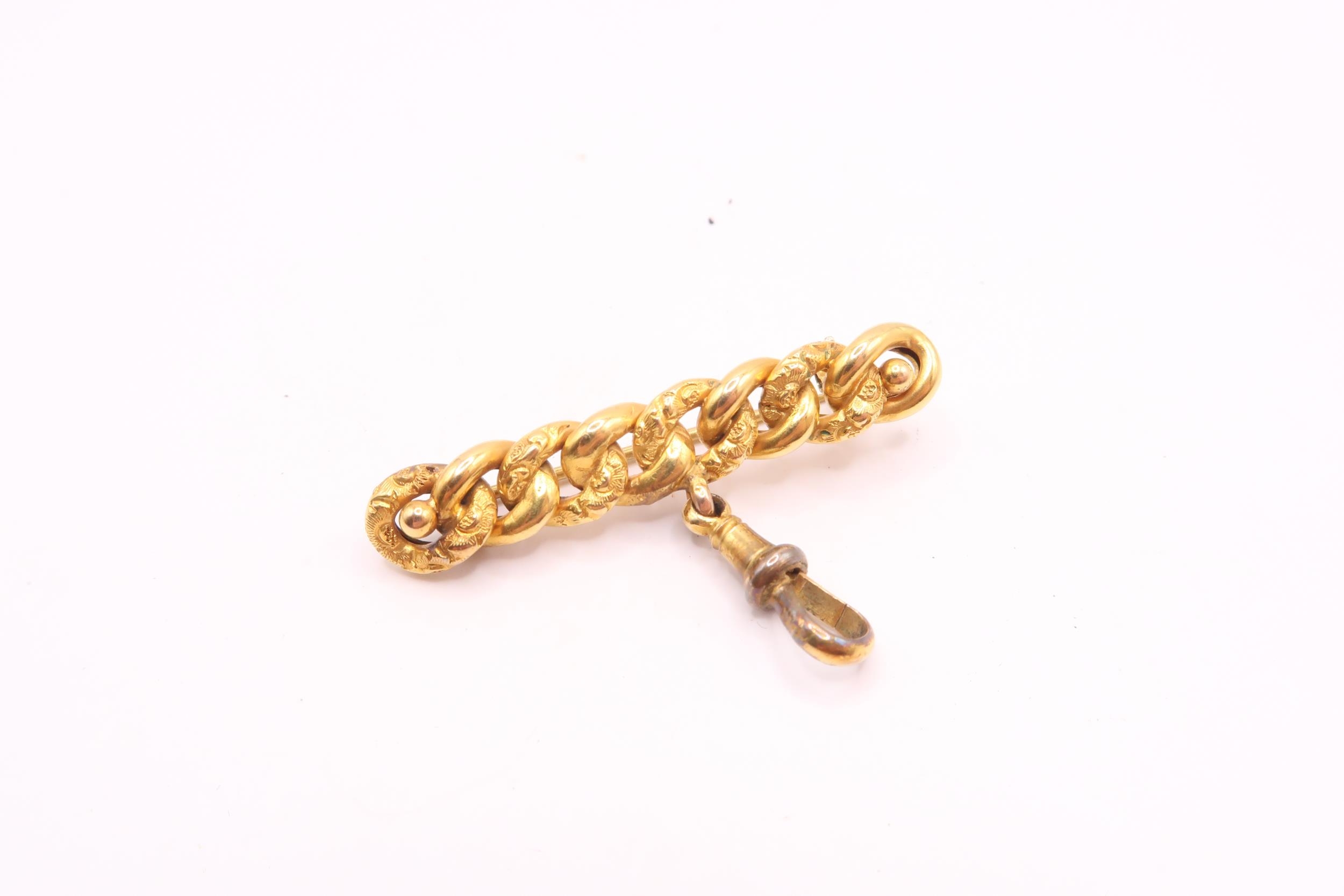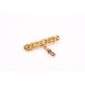 A curb link bar brooch. Length 42mm. Centre piece tests 18ct, toggle tests 9ct. Metal pin. Weight 5.92 grams