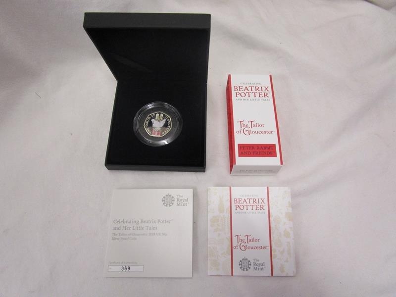 Royal Mint The Tailor of Gloucester silver proof 50 pence coin - Beatrix Potter 2018 - Black box edition