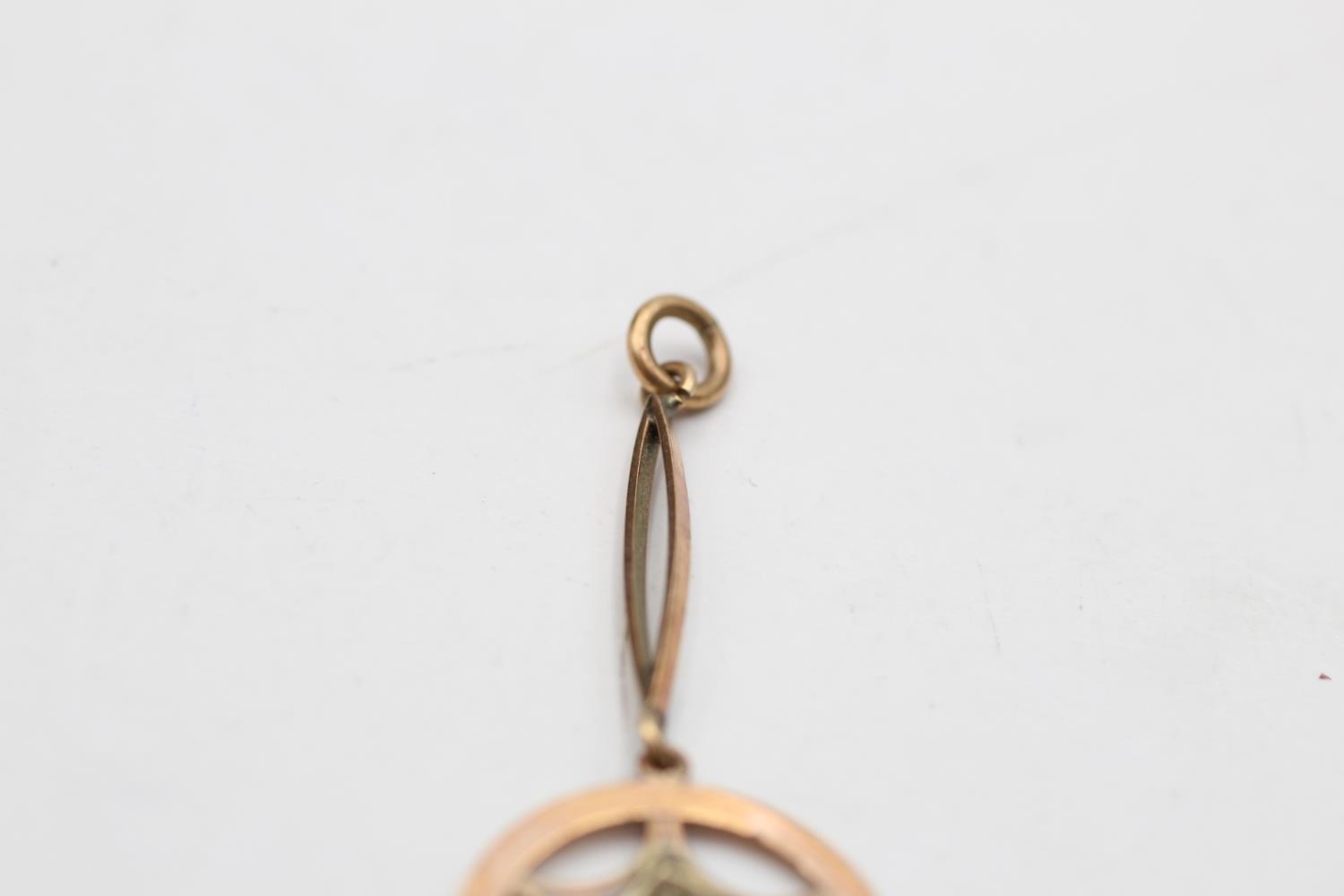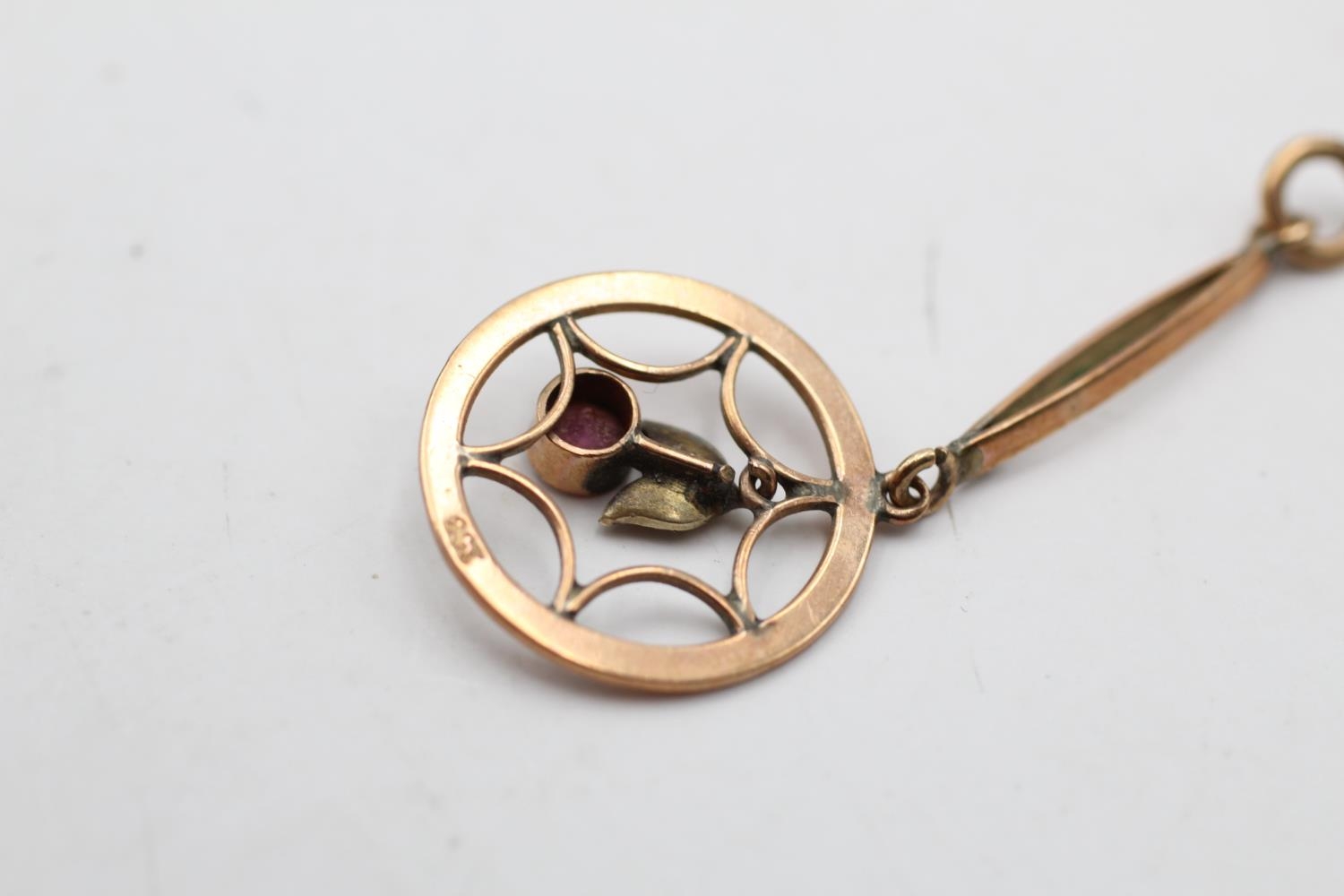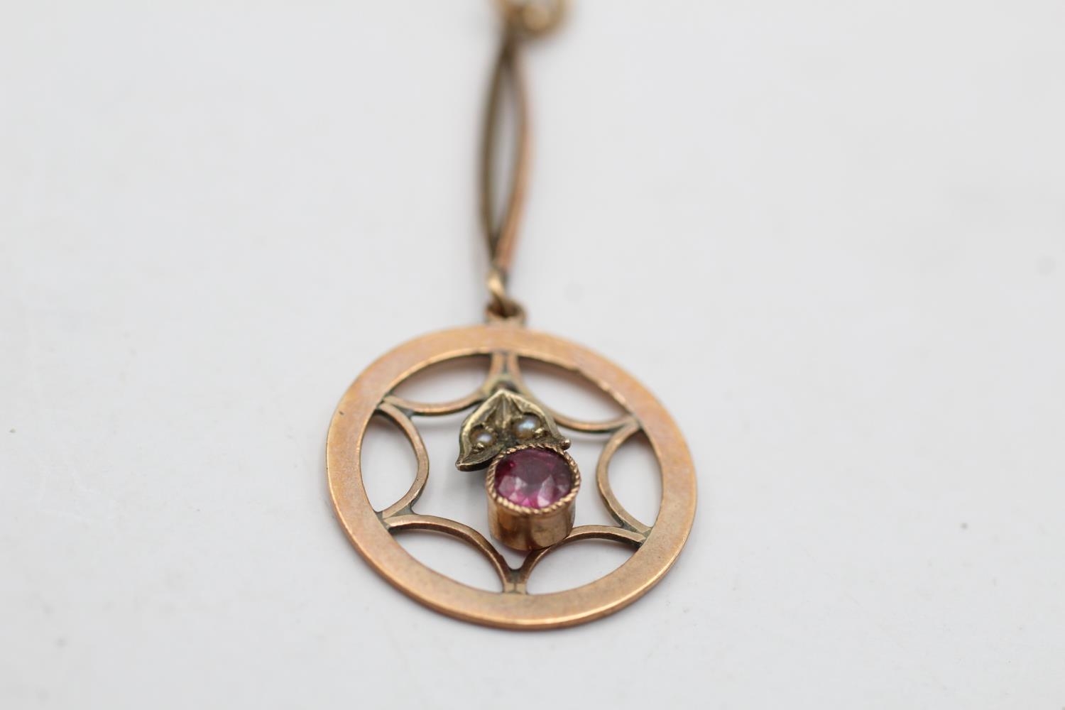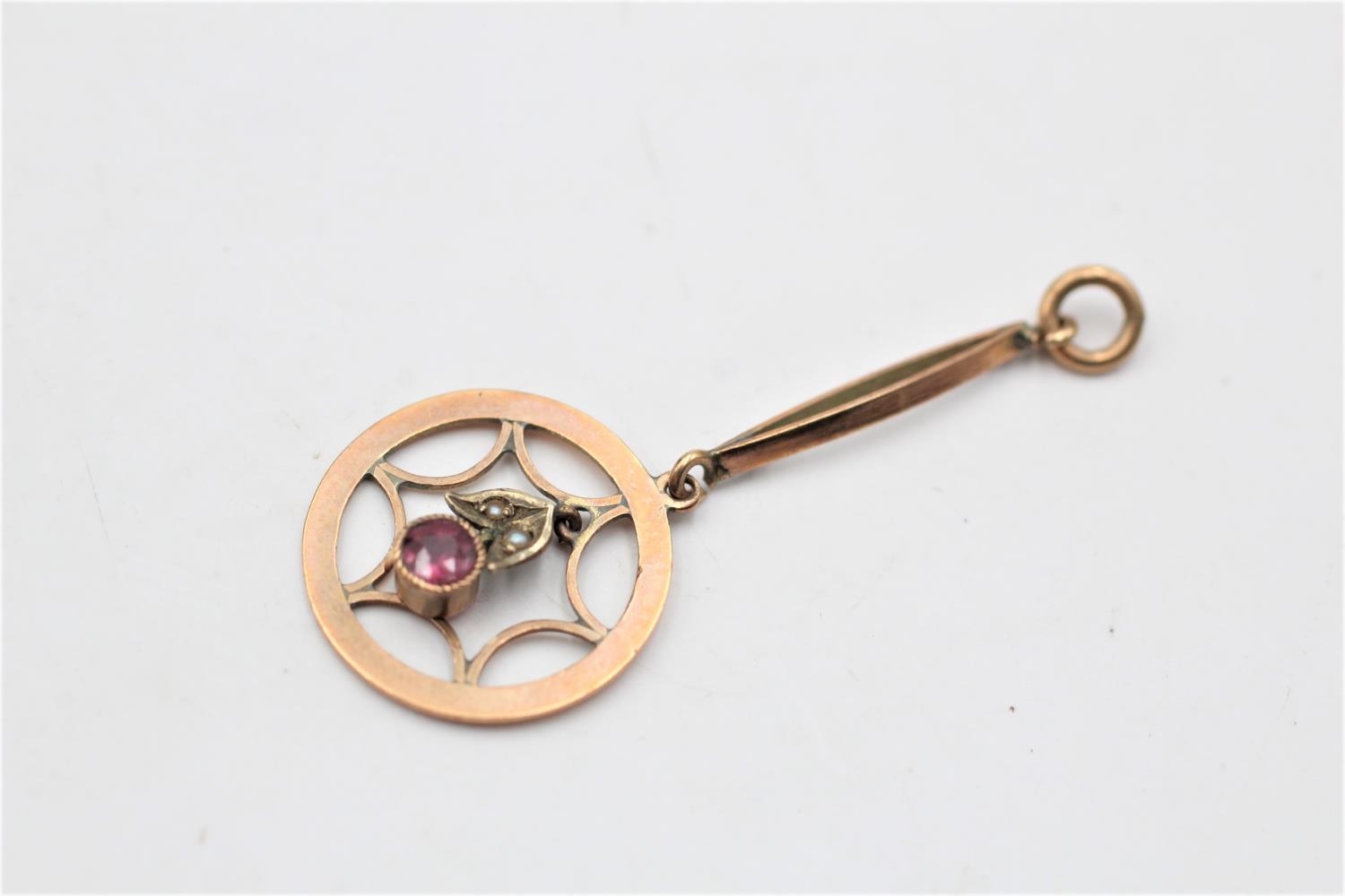 9ct gold antique garnet & seed pearl lavalier pendant (1.3g)