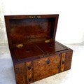 A Victorian walnut Tunbridge Ware parquetry inlaid tea caddy, the hinged domed top opening to reveal a twin division interior with covers 20cm wide.