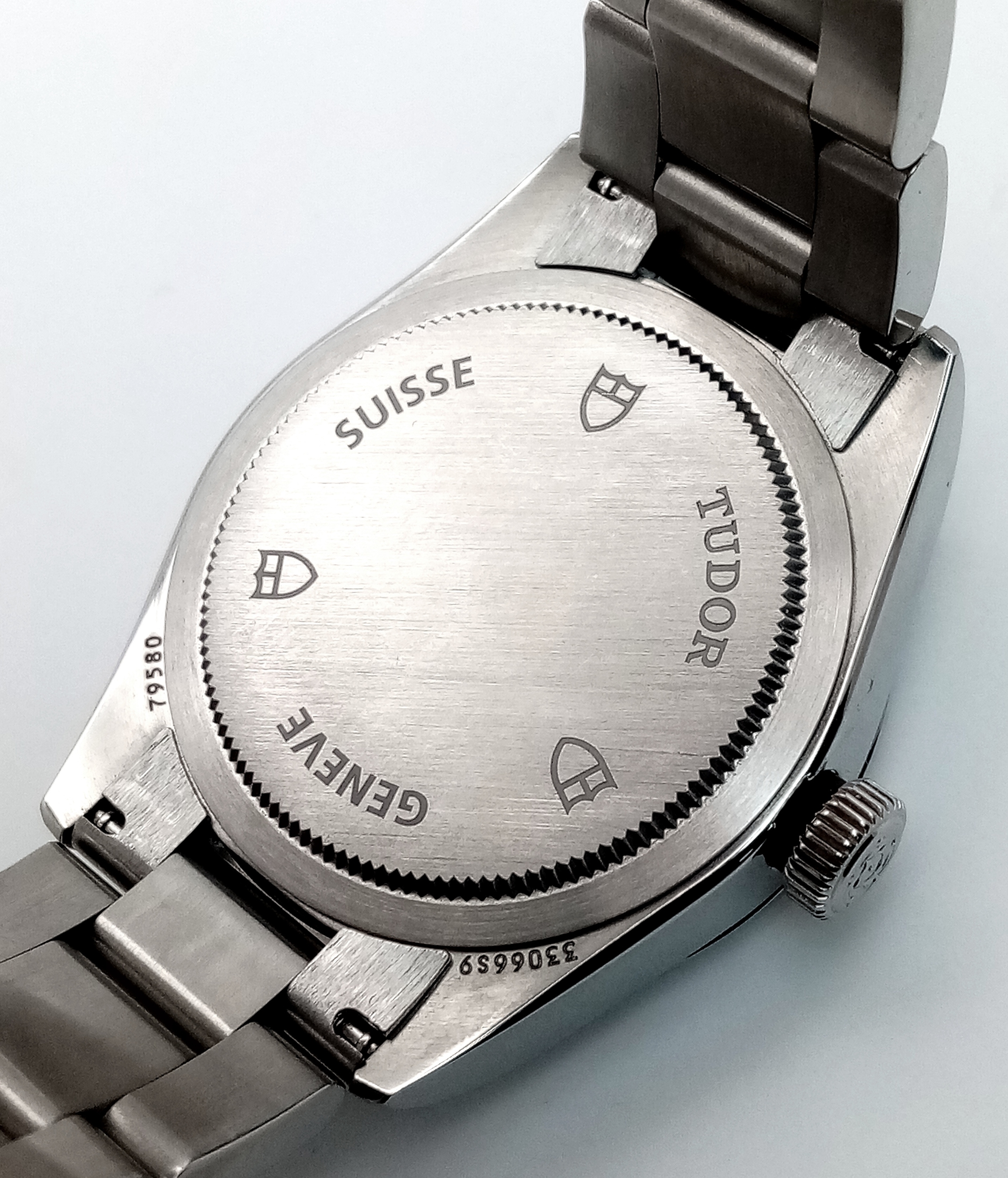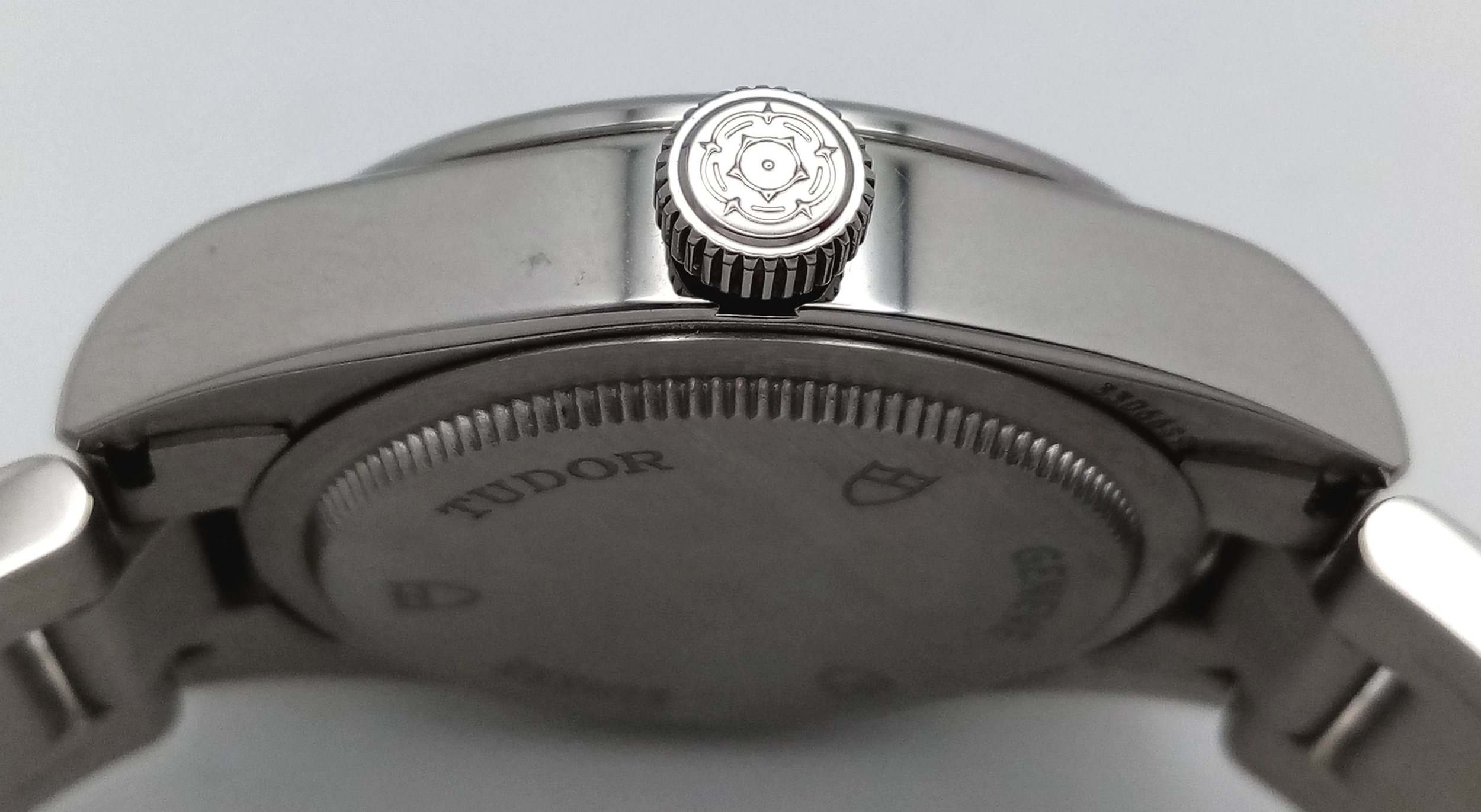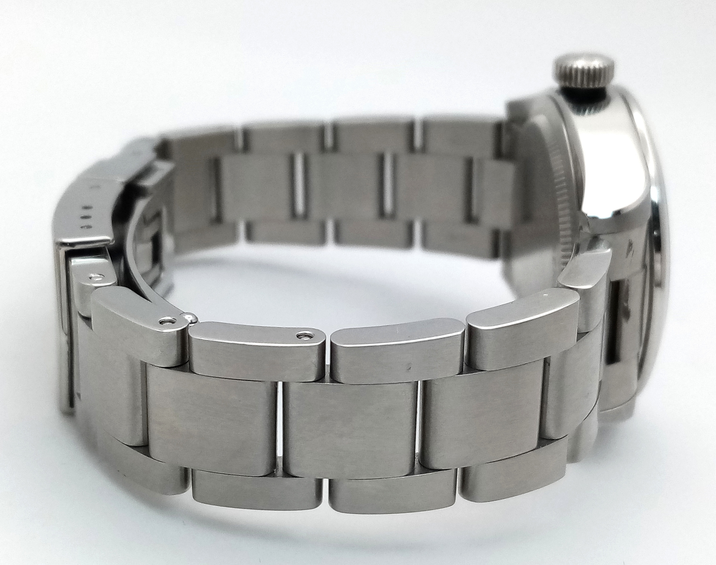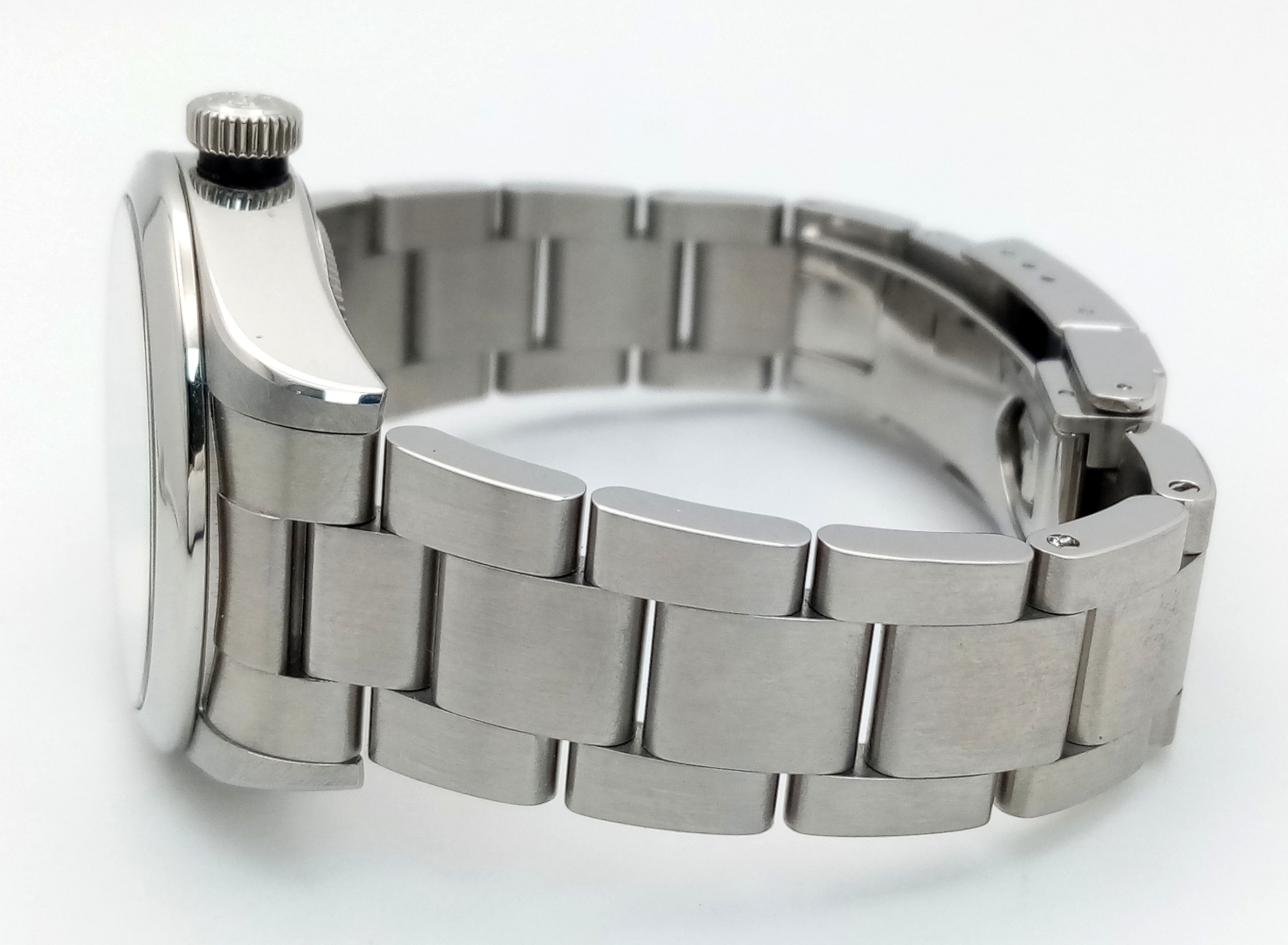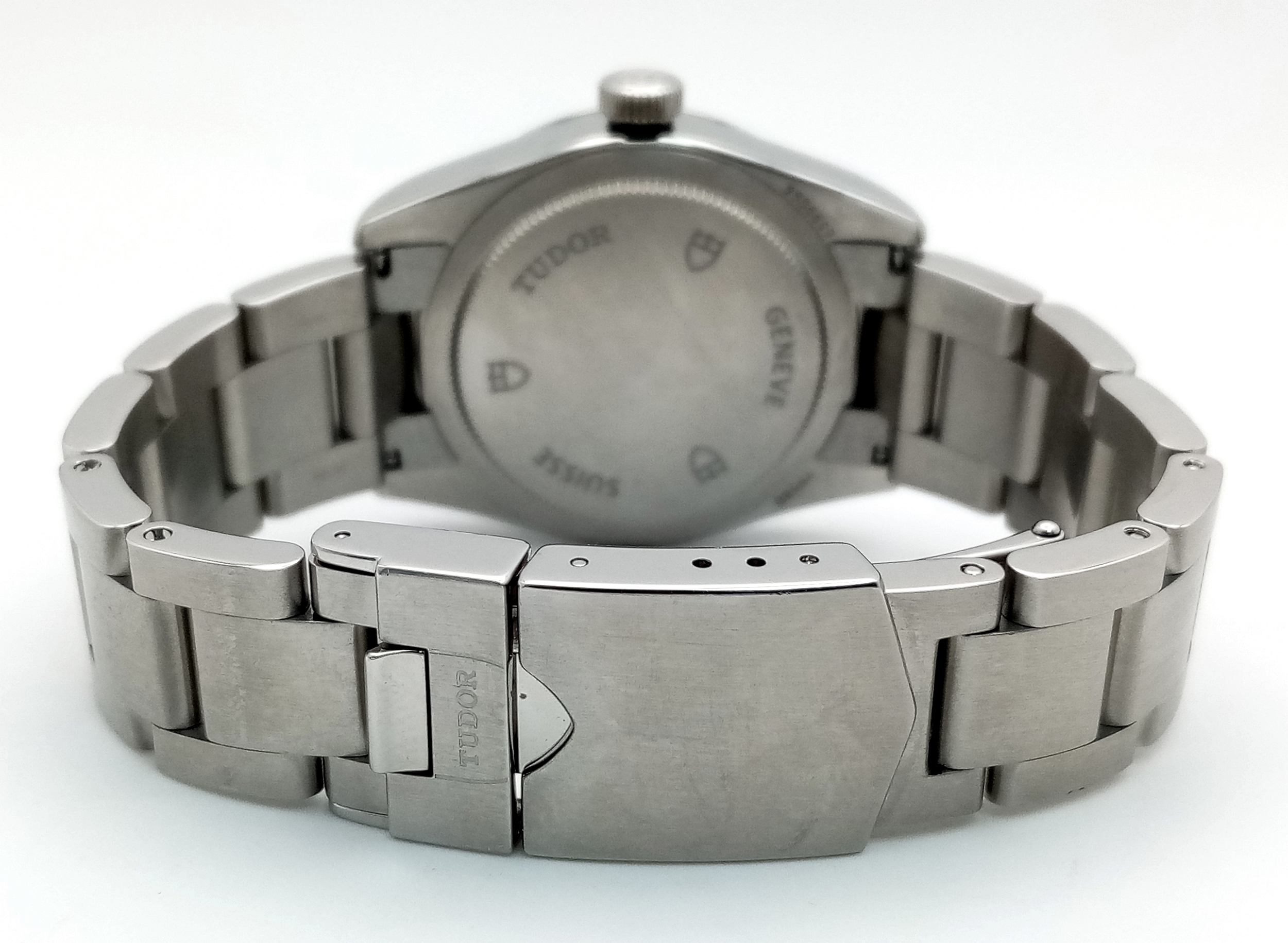 A Tudor Black Bay Automatic Ladies Watch. Model 79580. Stainless steel bracelet and case - 32mm. Silver tone dial. In good condition and working order. Comes with box and papers. Ref: 010234