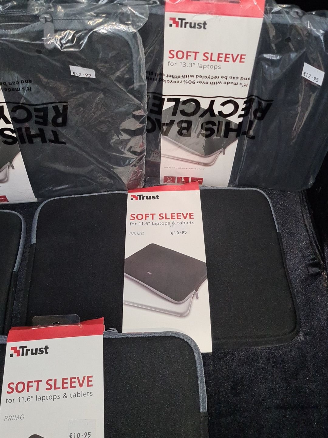 Six Trust Soft Sleeves, three for 13.3" laptops, three for 11.6" laptops & tablets.