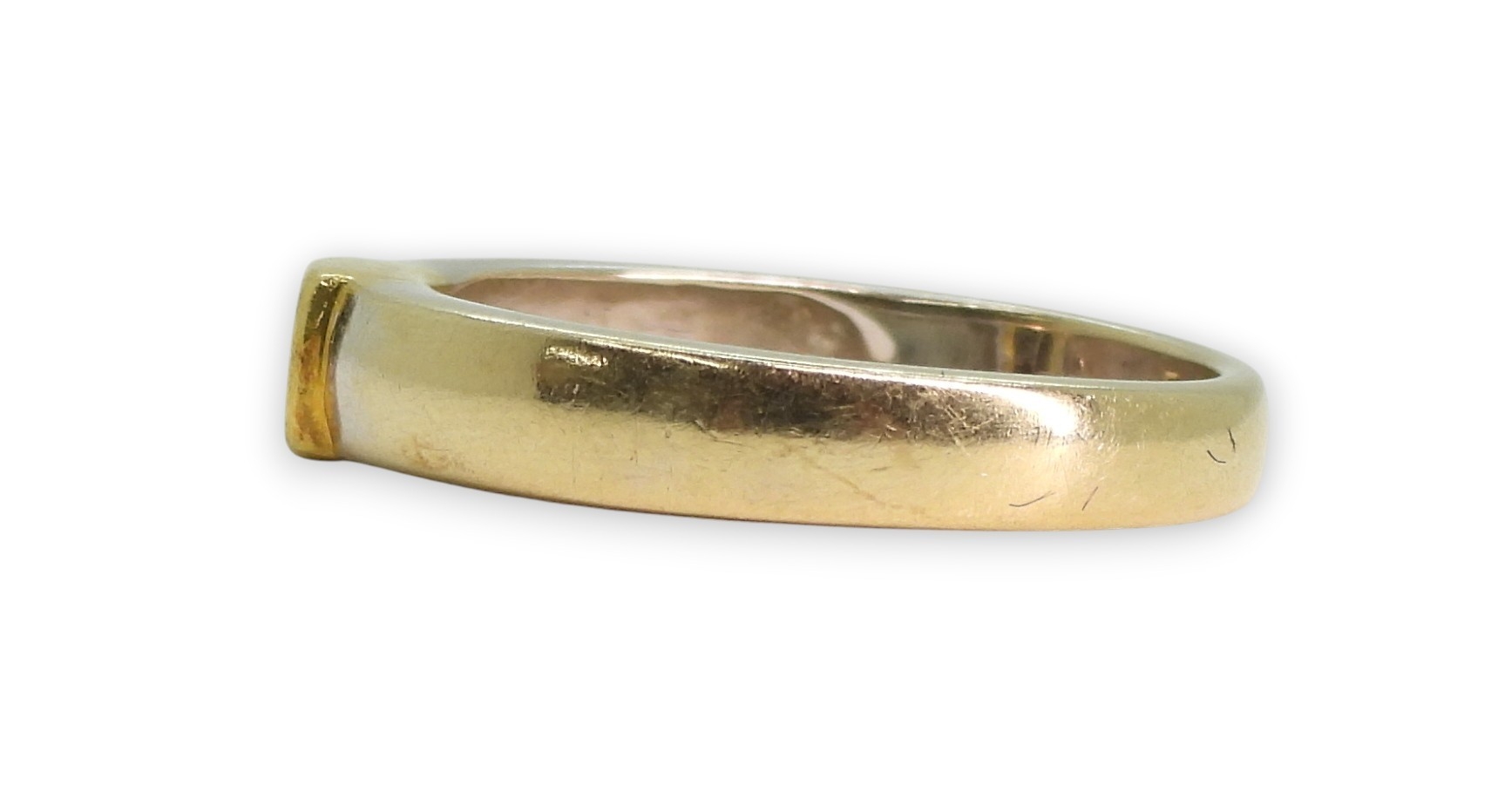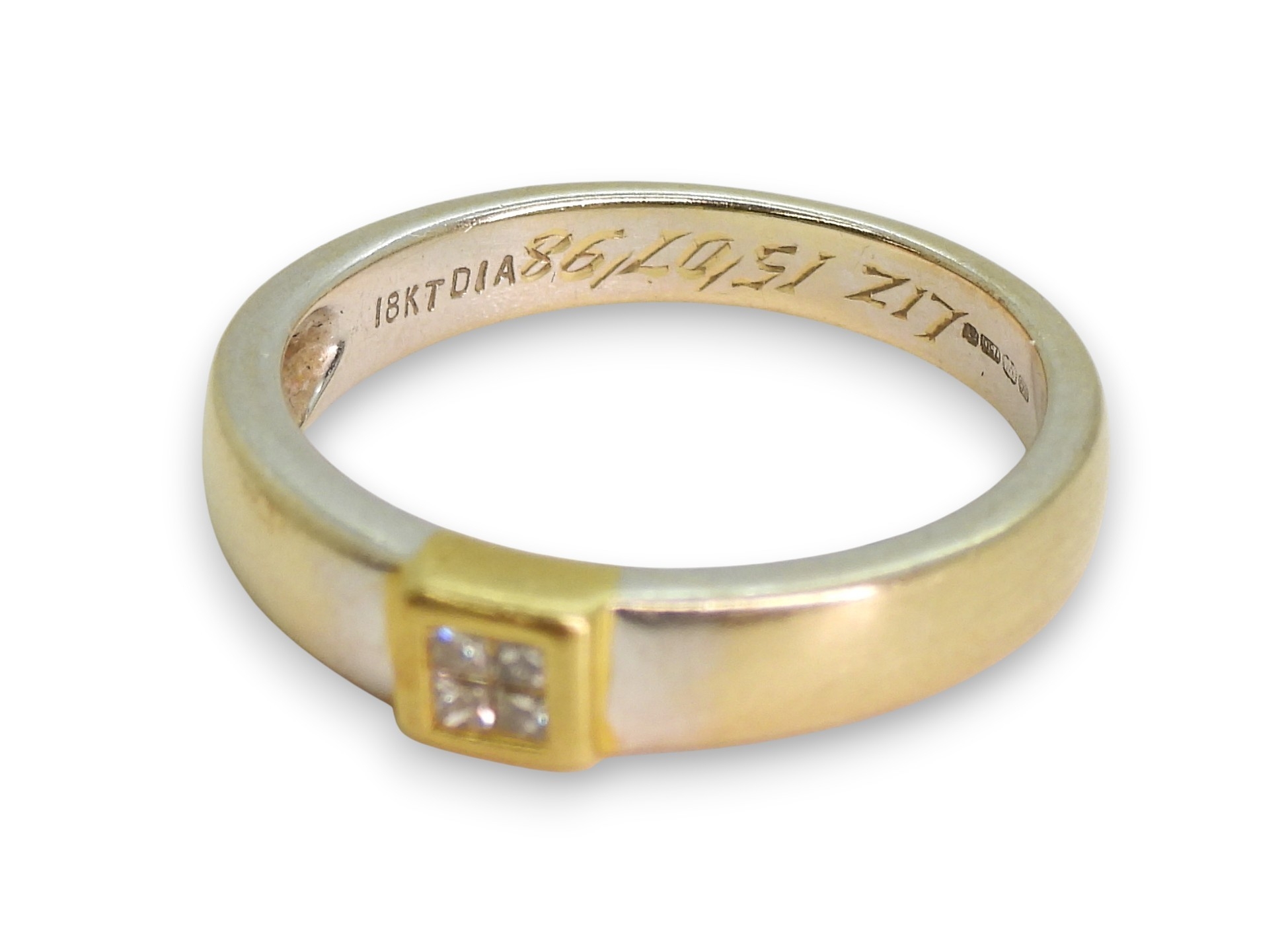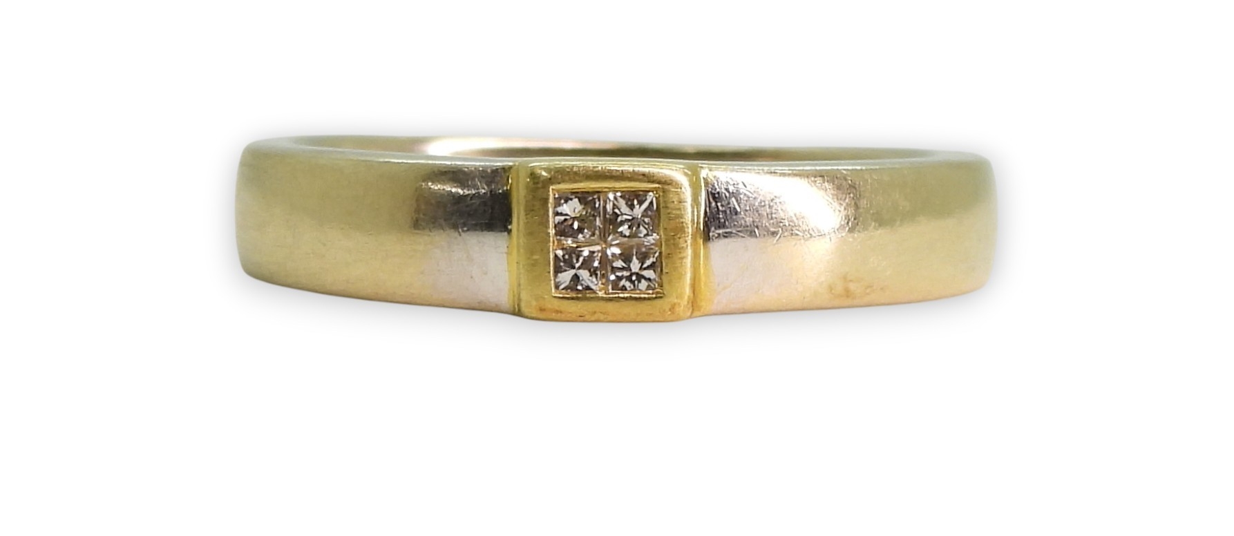 An 18ct yellow and white gold, four princess cut diamond cluster ring, size N1/2, weight 4gms