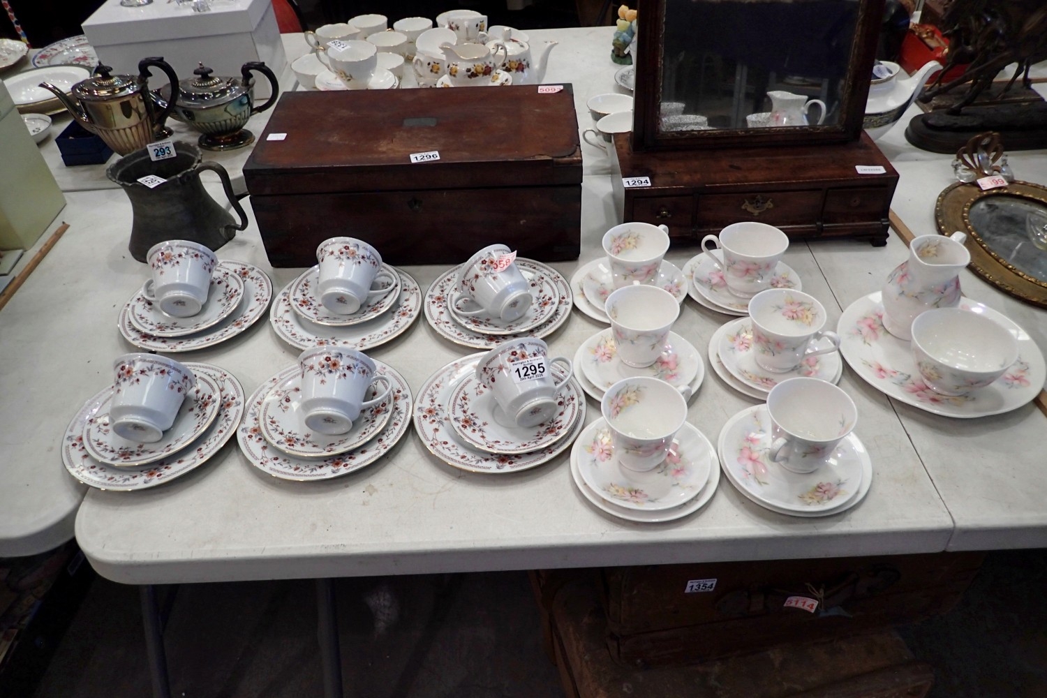 Two teaware sets, oriental and floral example. Not available for in-house P&P