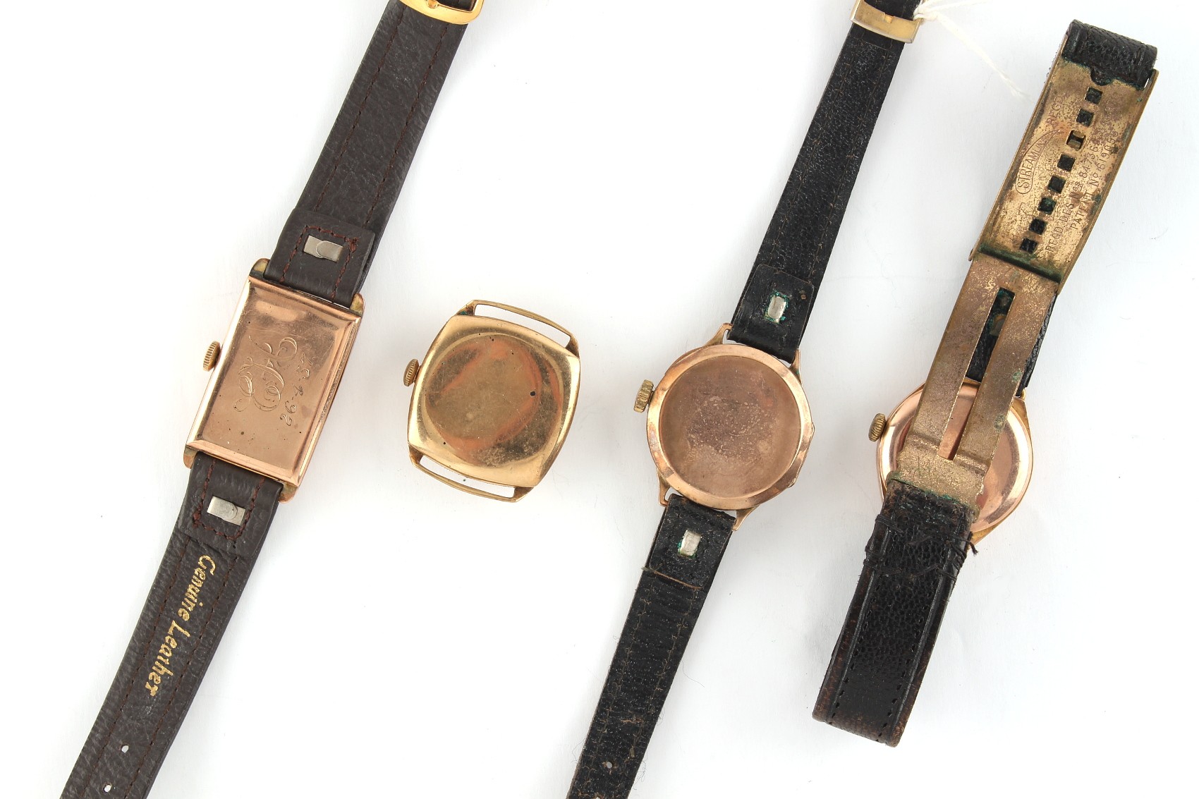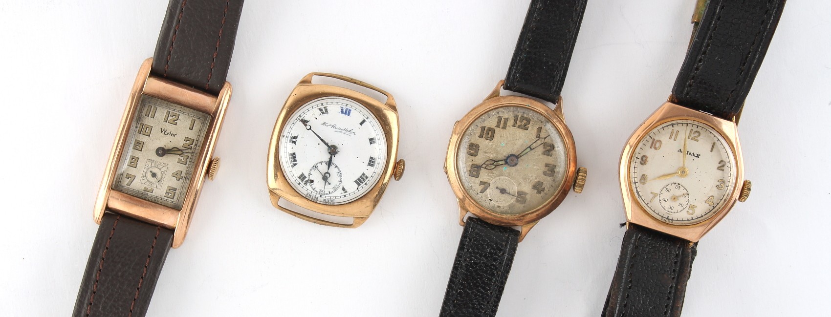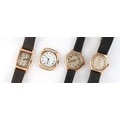 Property of a deceased estate, a private collection of watches - four 9ct gold wristwatches including a tank cased example, the tank watch requires attention, the other three appear to be working but no guarantees are given (4).