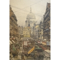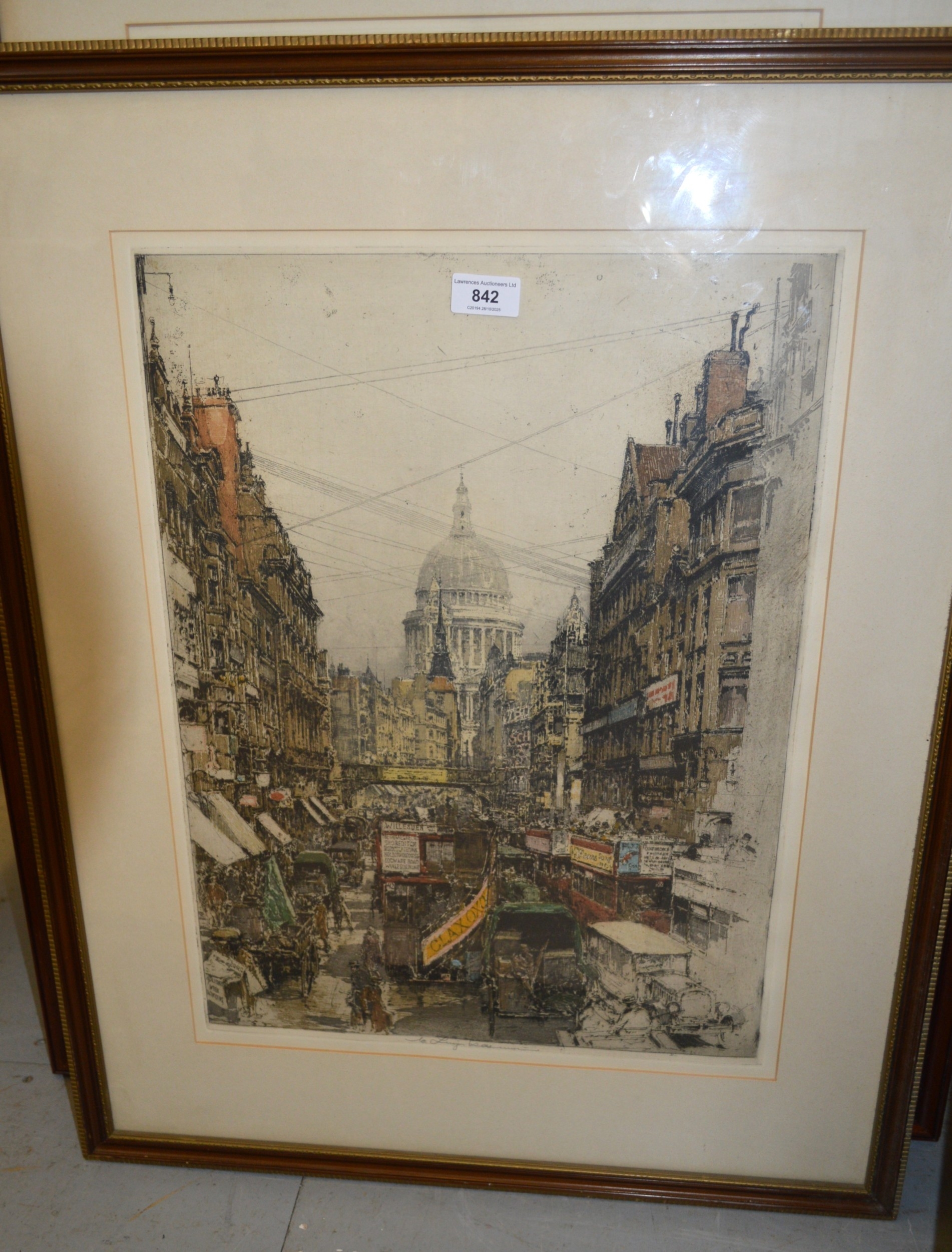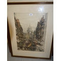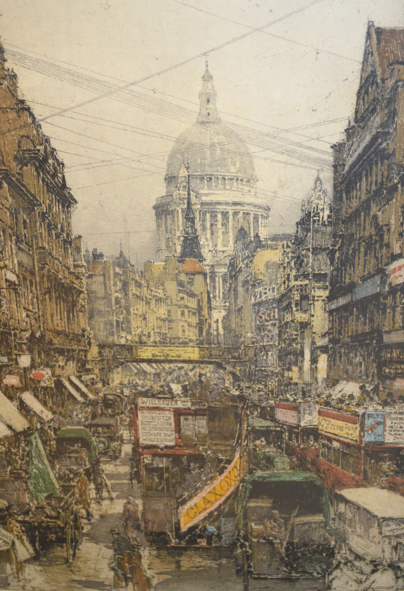 Luigi Kasimir, artist signed coloured etching, ' Fleet Street ', 53 x 39cm, framed