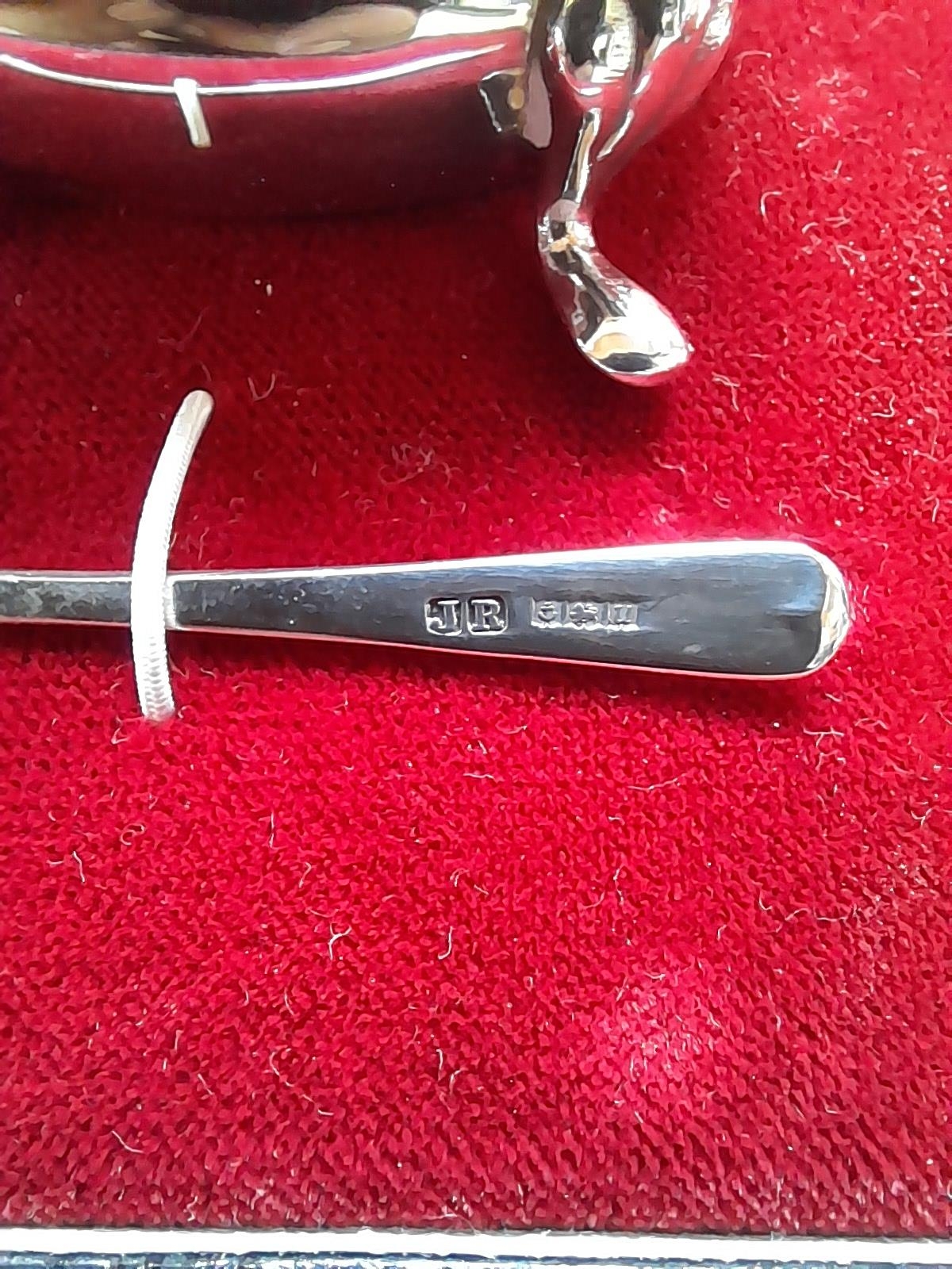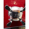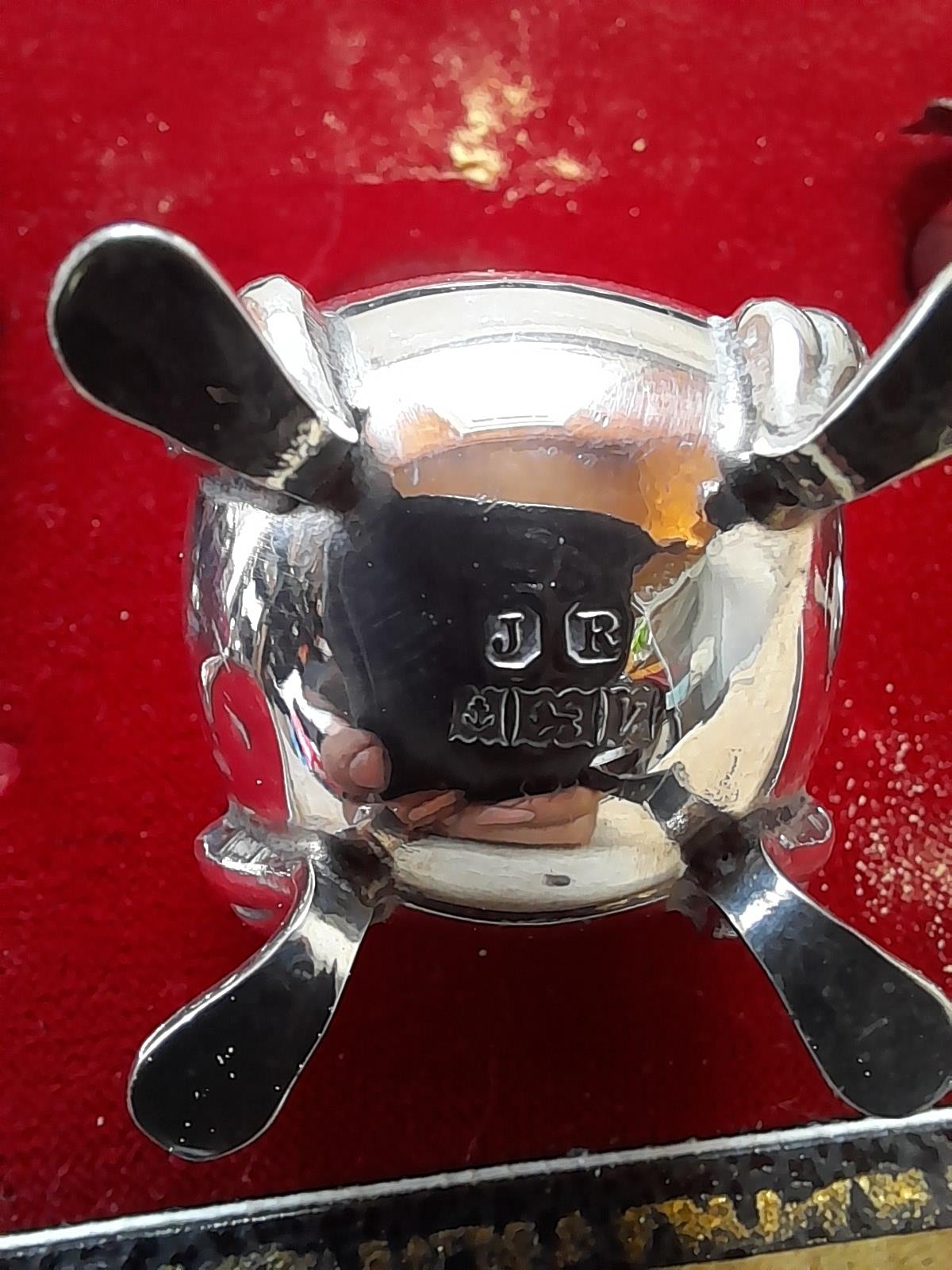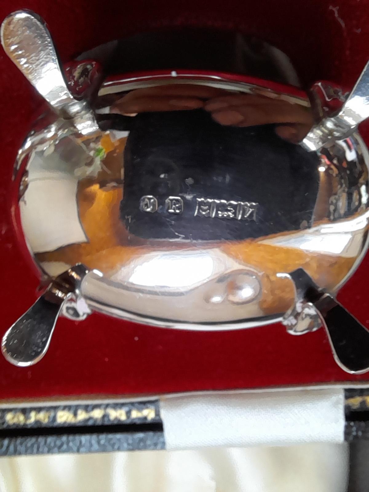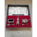 Silver table salt cruet set with blue glass liners in box of issue Birm 1970 John Rose 125 g