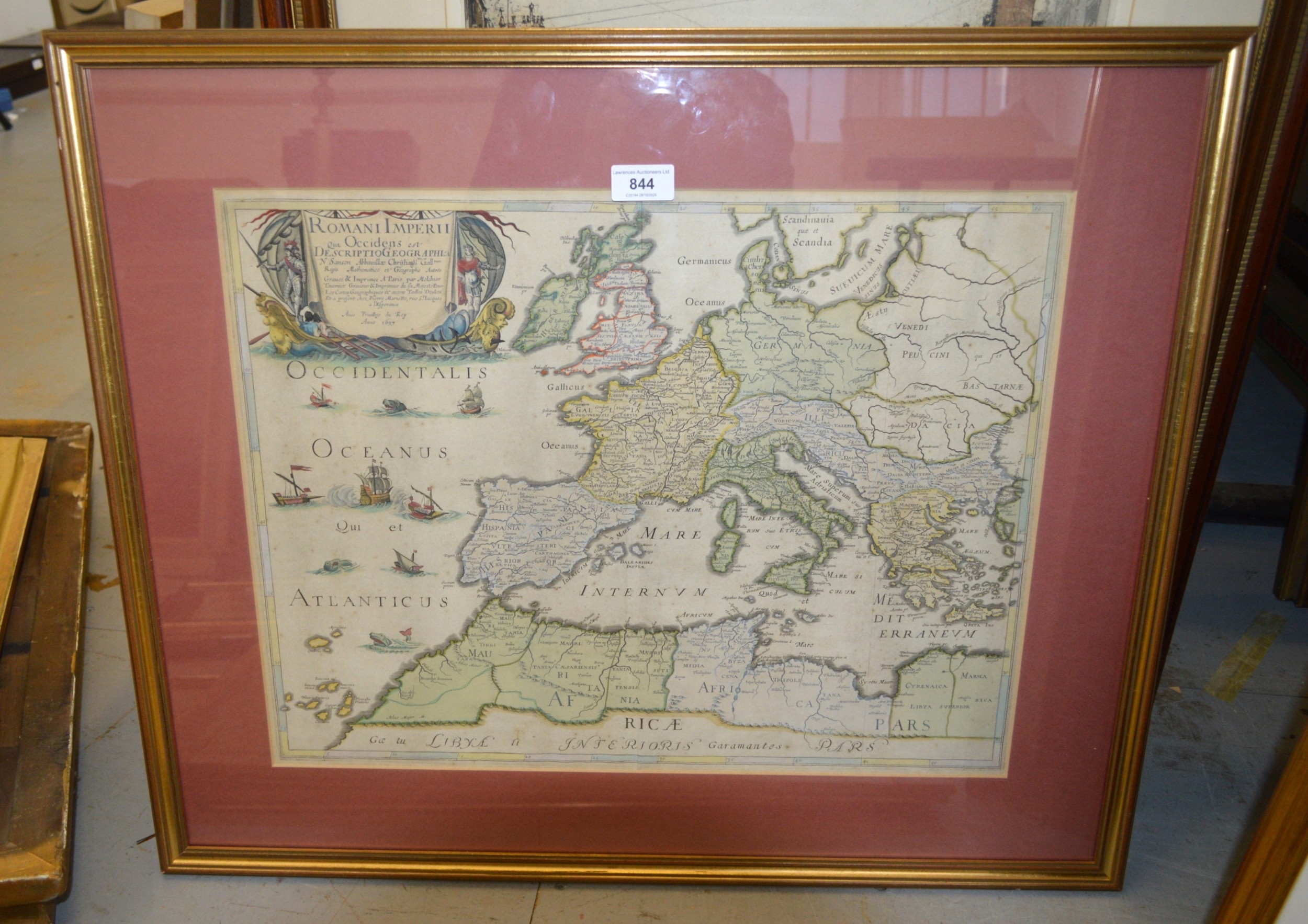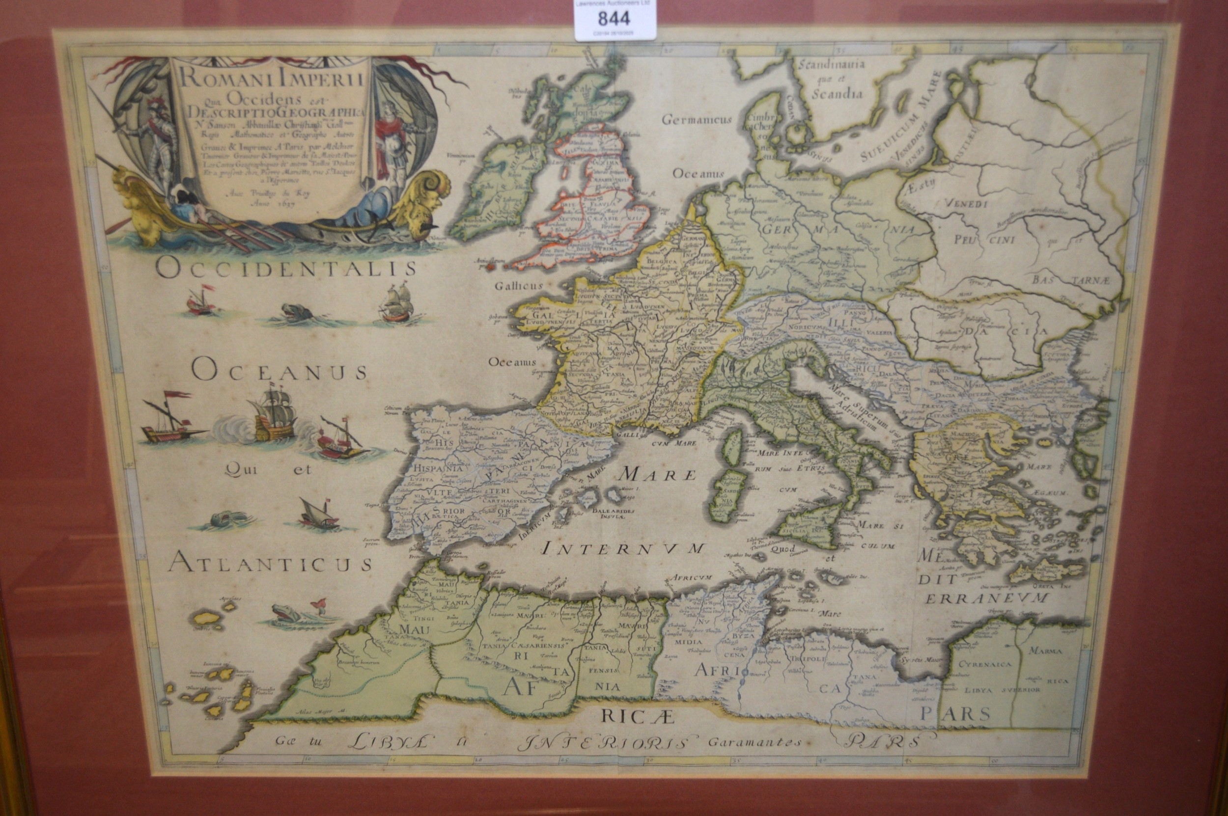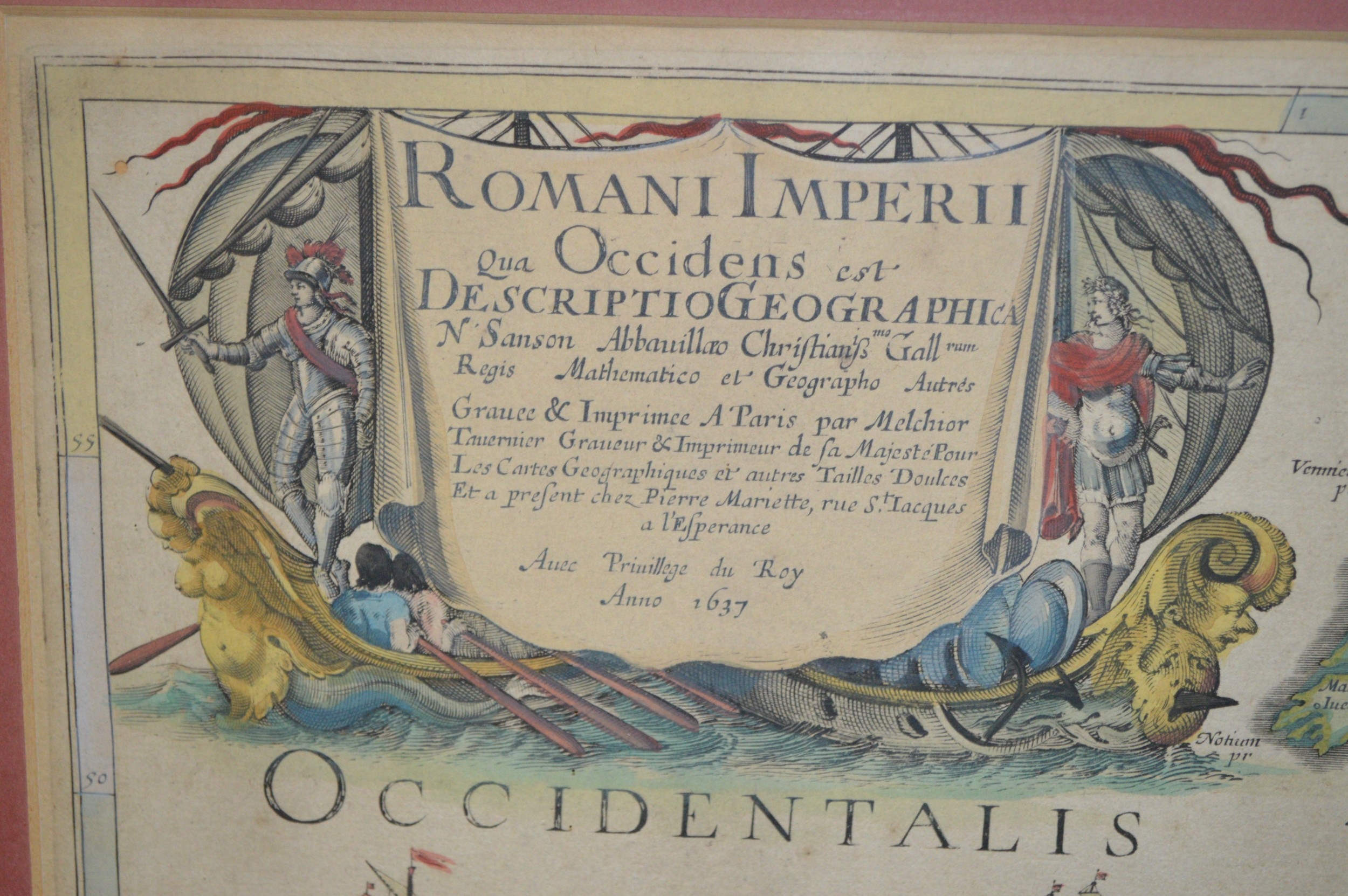 17th Century coloured map, ' Romani Imperii ' by N. Sanson, 39 x 52cm, gilt framed