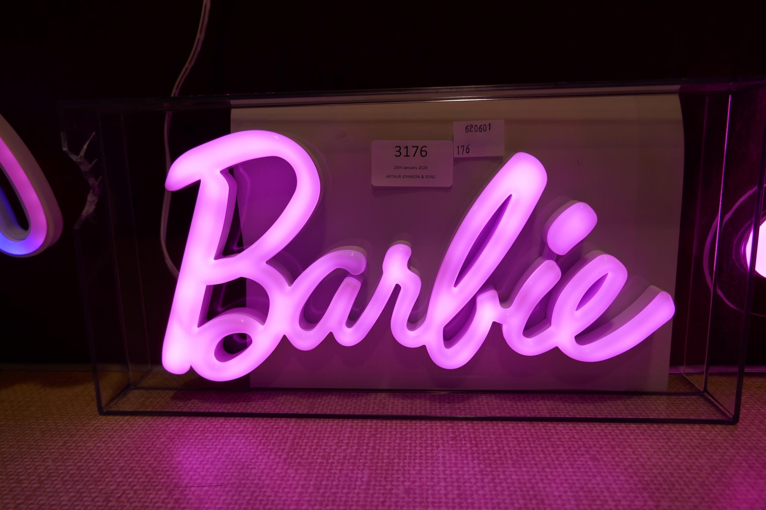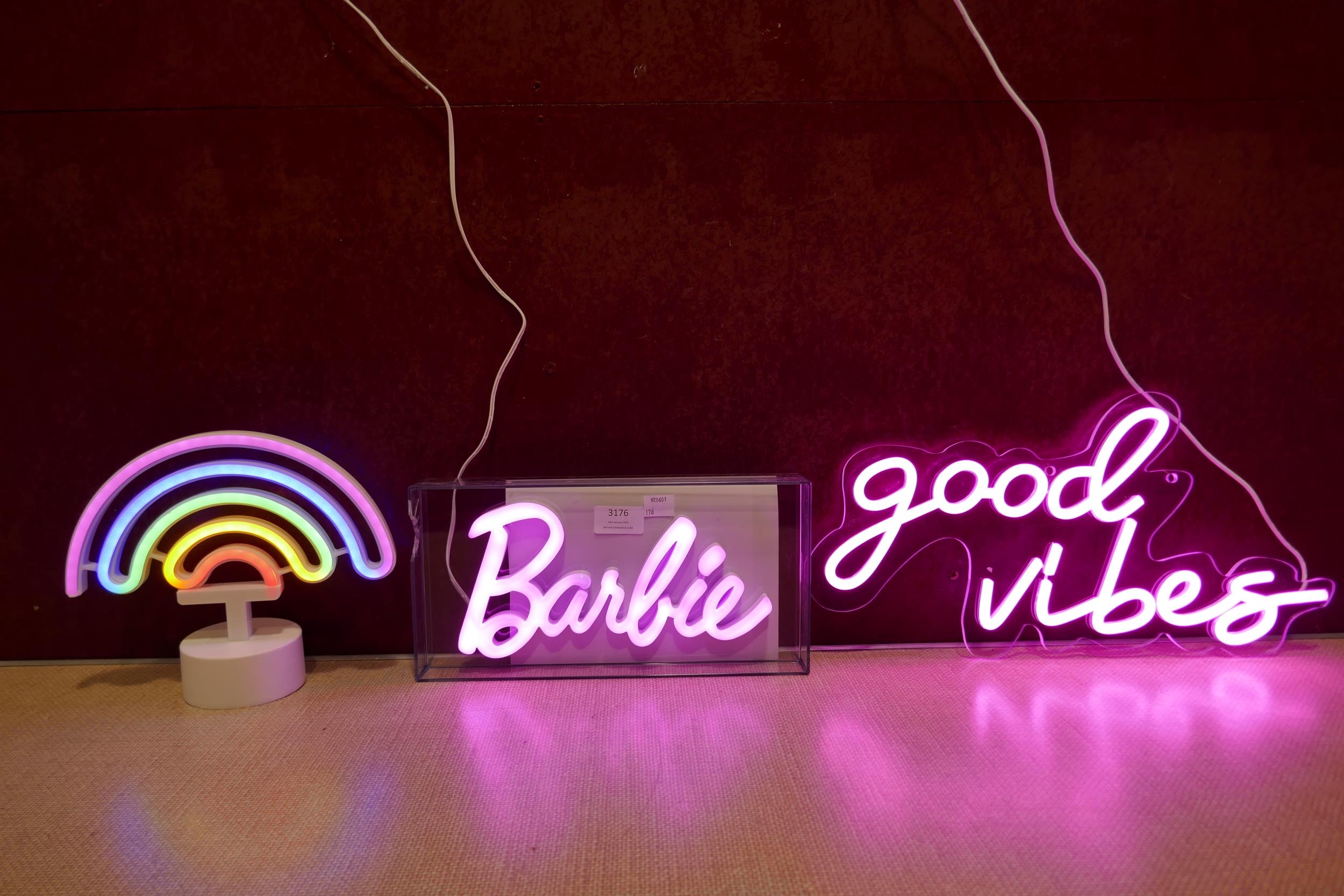 Three Neon illuminated signs inc Barbie / Good Vibes * This ...