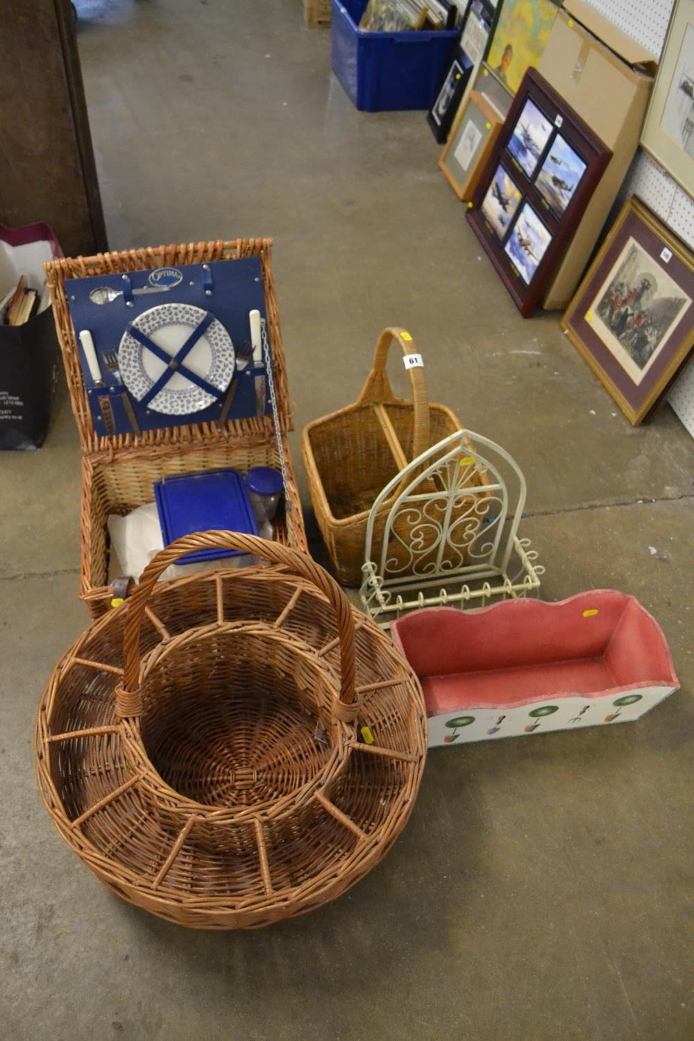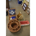 CANE PICNIC BASKET, WINE BASKET, BASKET TRUG, IRON WALL BRACKET, PAINTED TROUGH