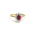An 18ct gold ruby and diamond cluster ring. Size O, 3g