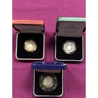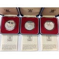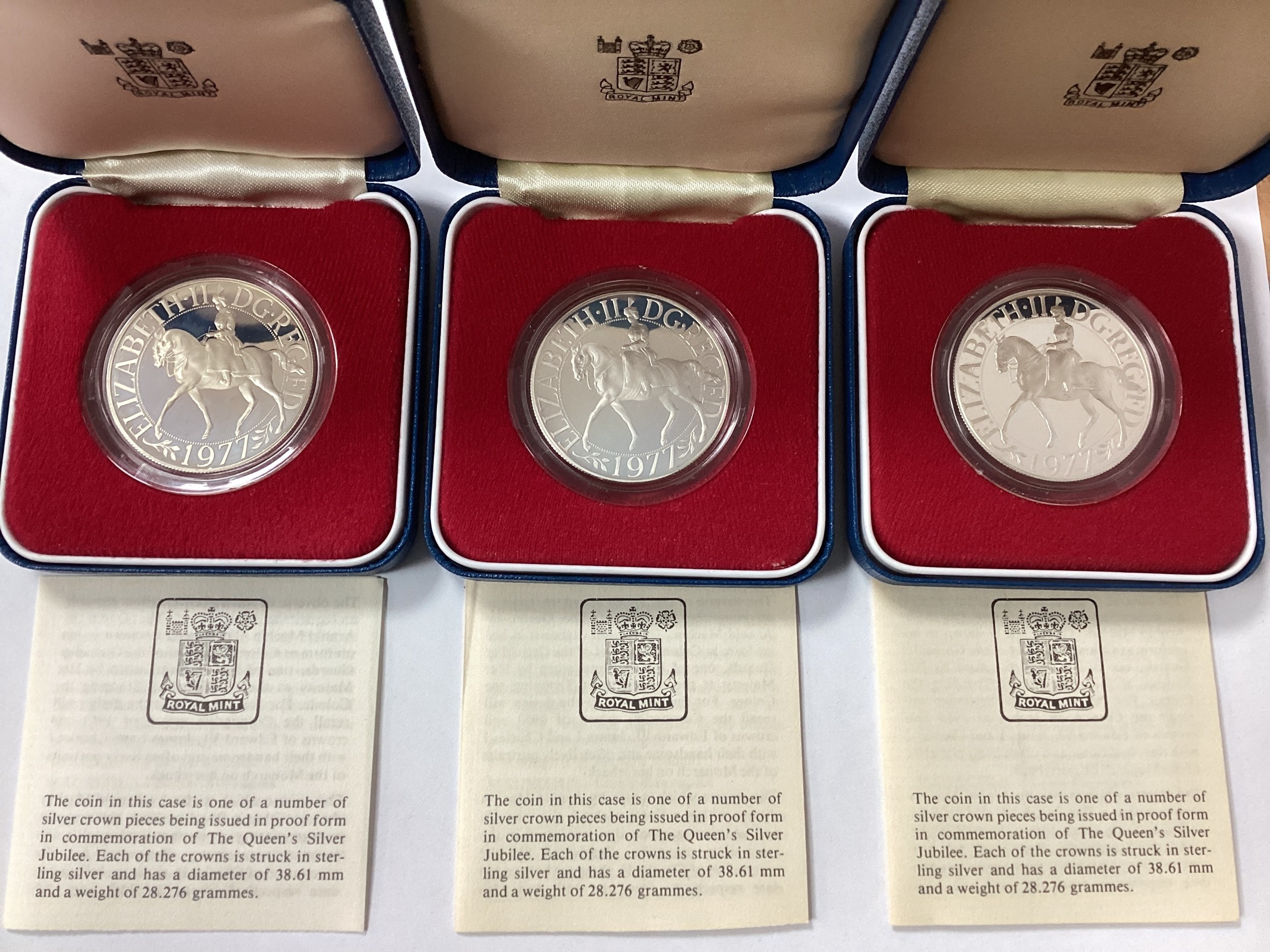 Three Royal Mint 1977 The Queen's Silver Jubilee Silver Proof Crowns, all cased with certificates of authenticity.