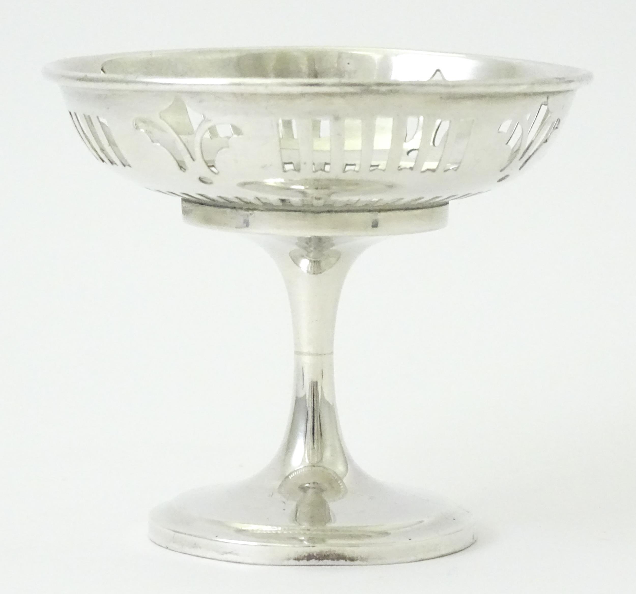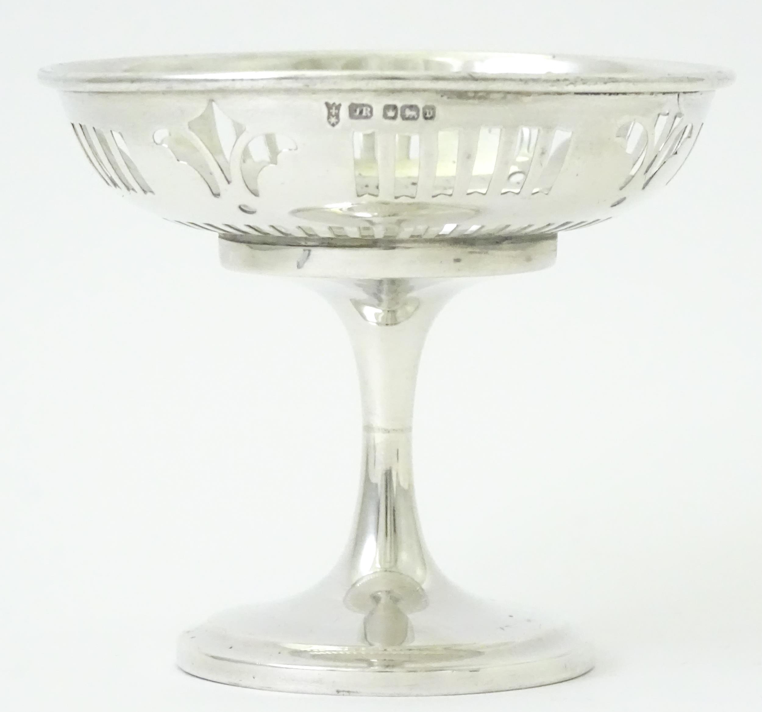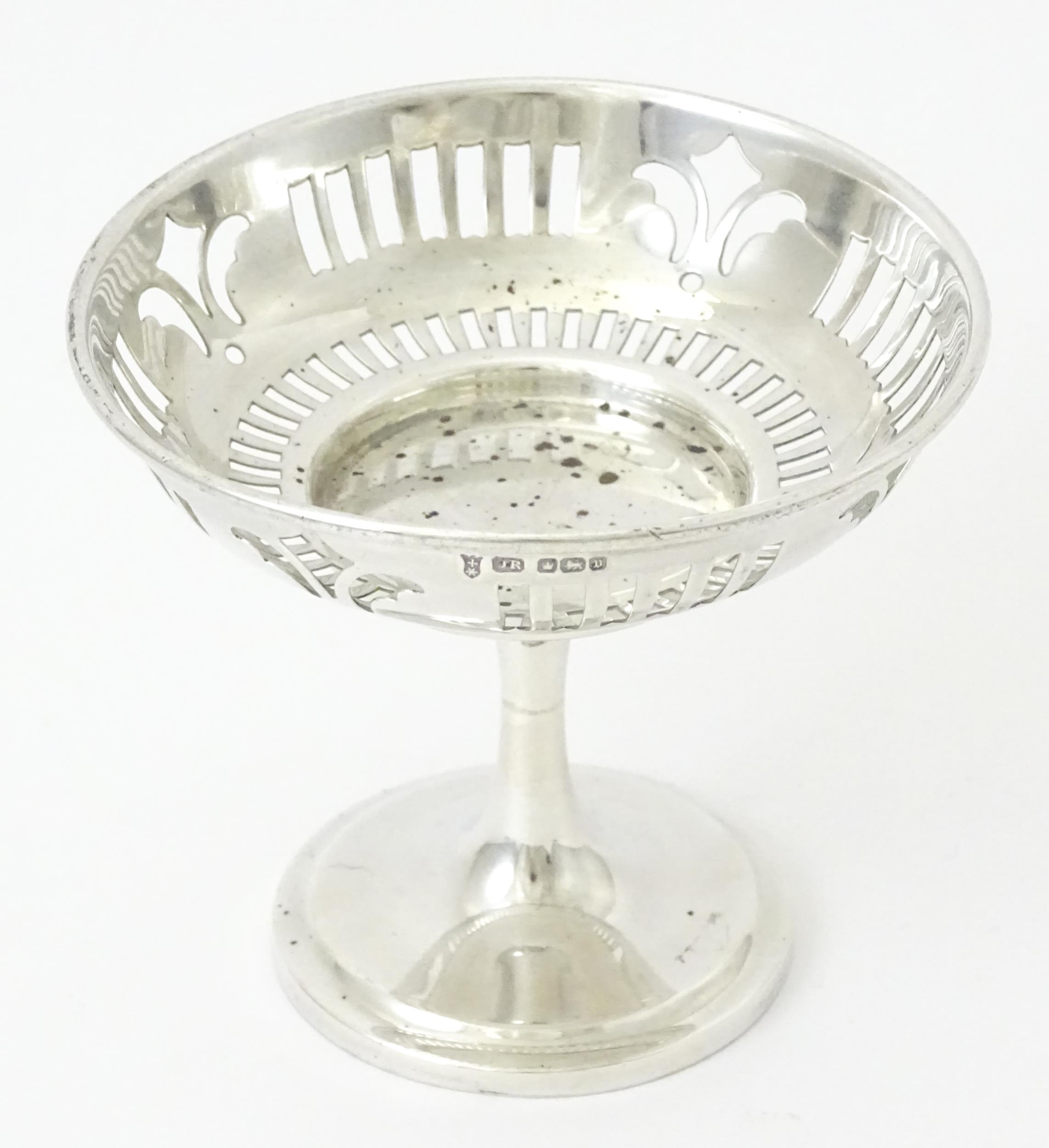 A silver pedestal bonbon dish with pierced decoration hallmarked Sheffield 1913, maker Joseph Rodgers & Sons. Approx. 3" high