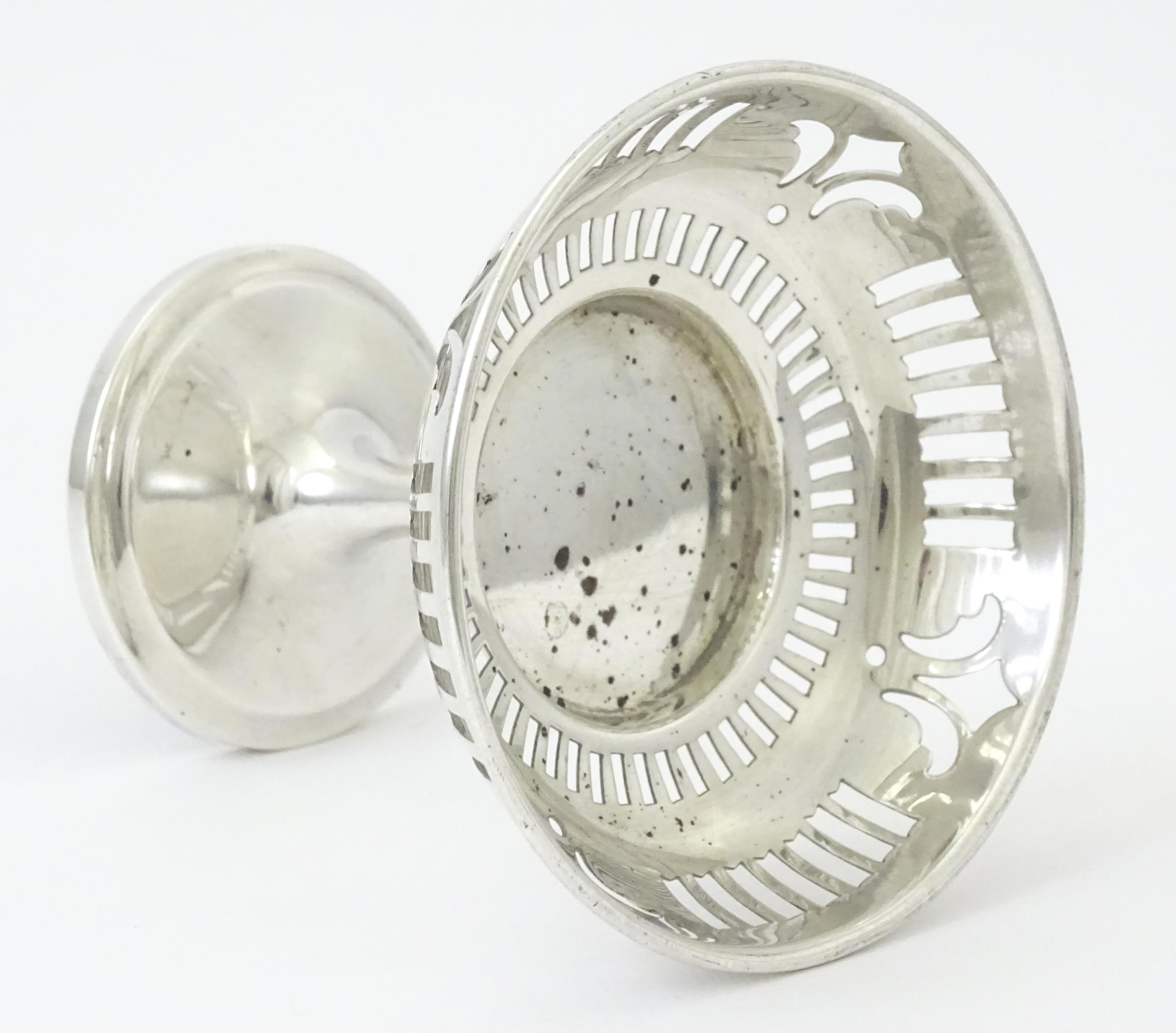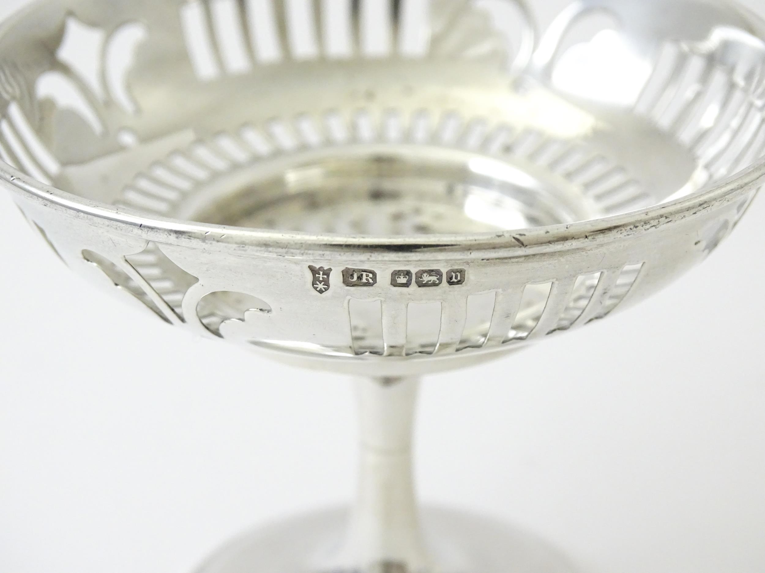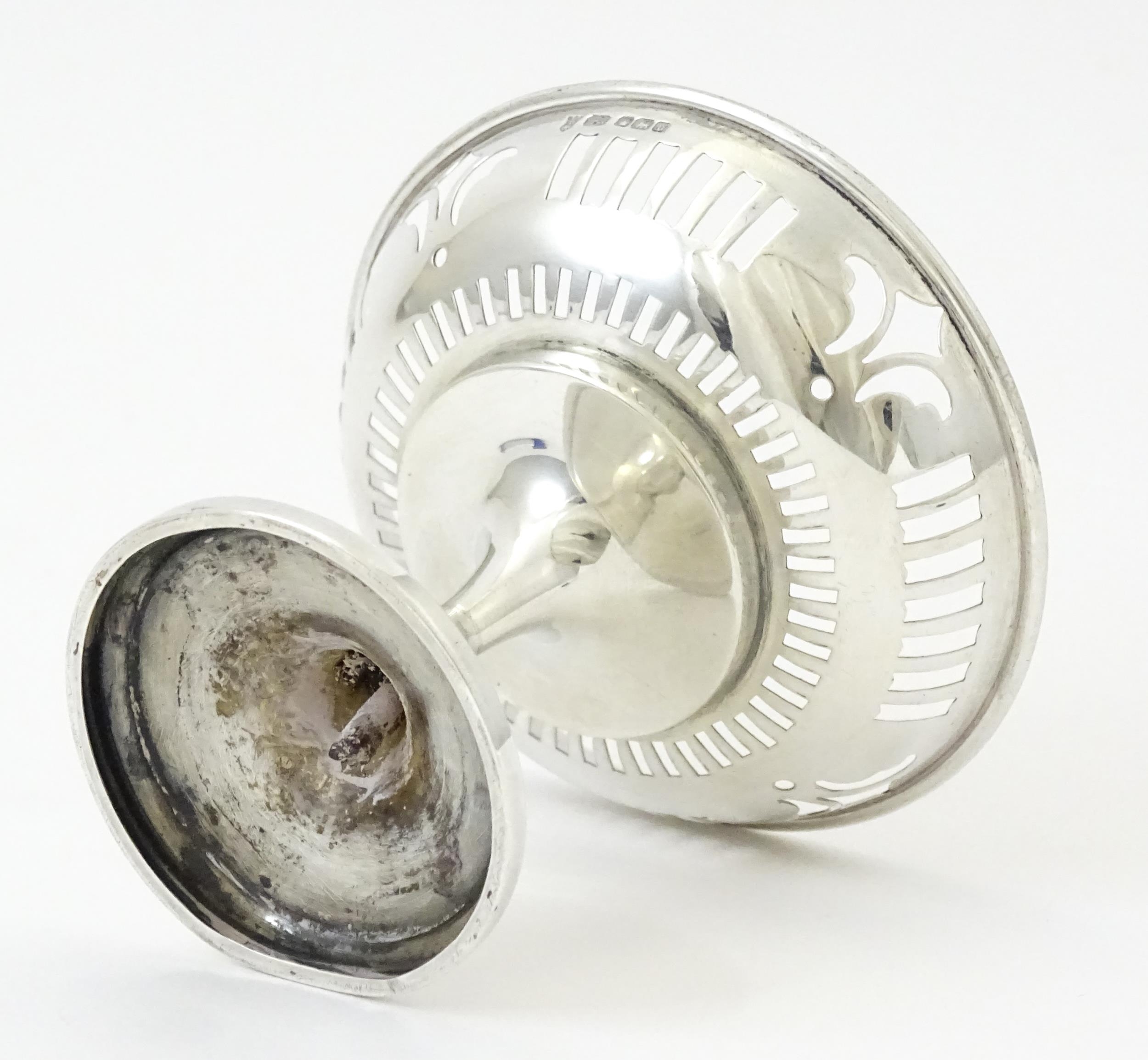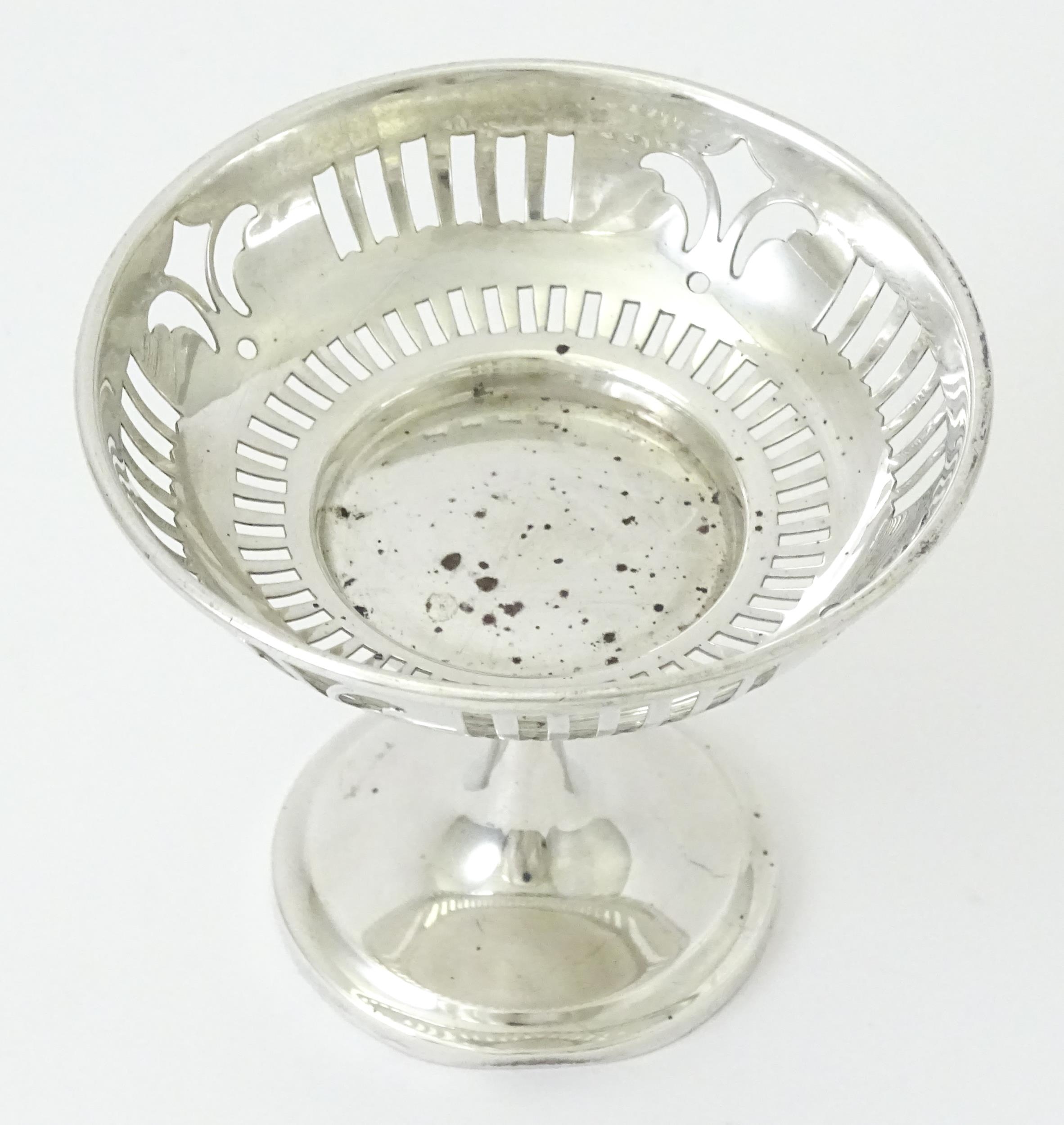 A silver pedestal bonbon dish with pierced decoration hallmarked Sheffield 1913, maker Joseph Rodgers & Sons. Approx. 3" high