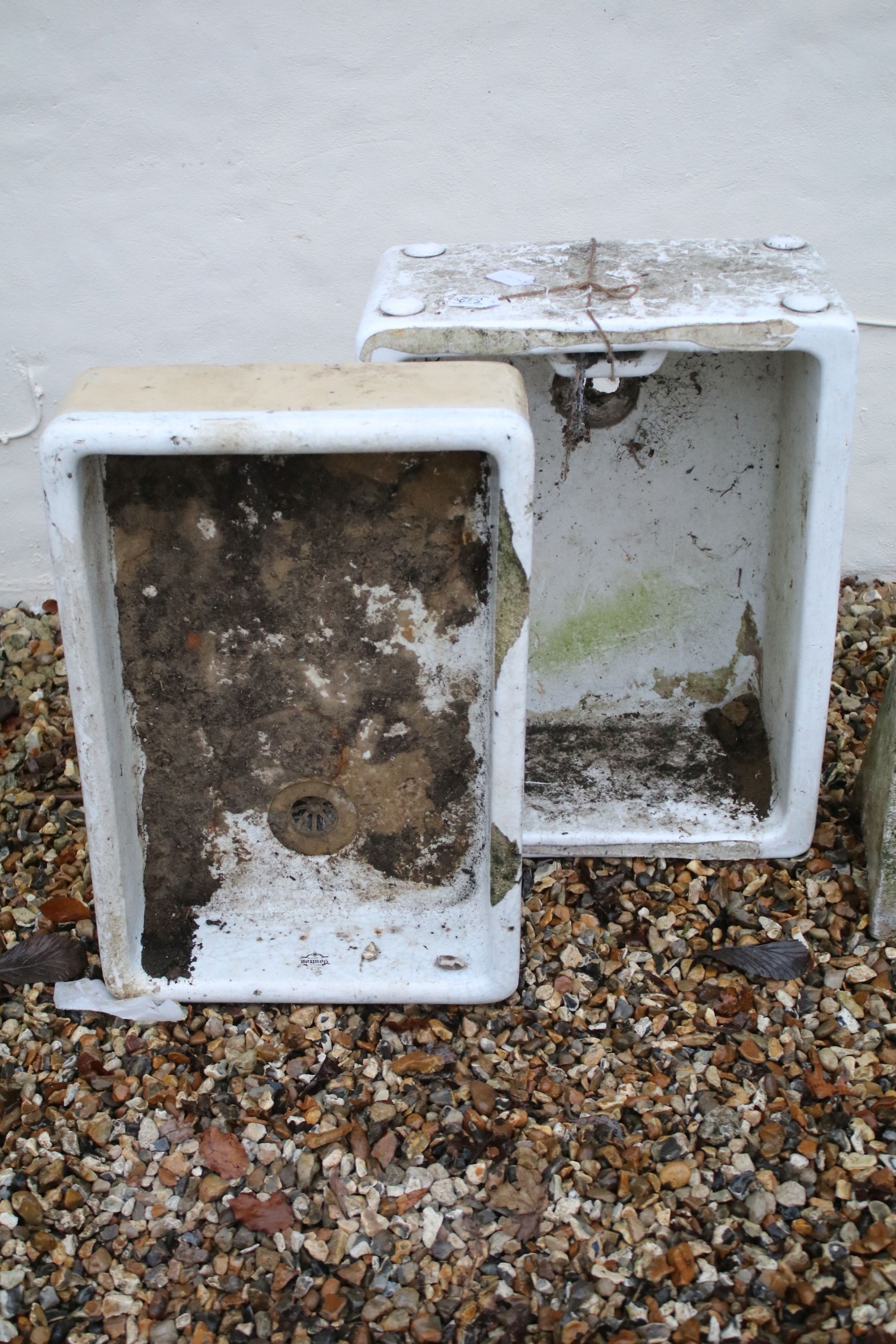 Two Belfast butler sink planters, largest measuring W 45cm H62cm, D 26cm