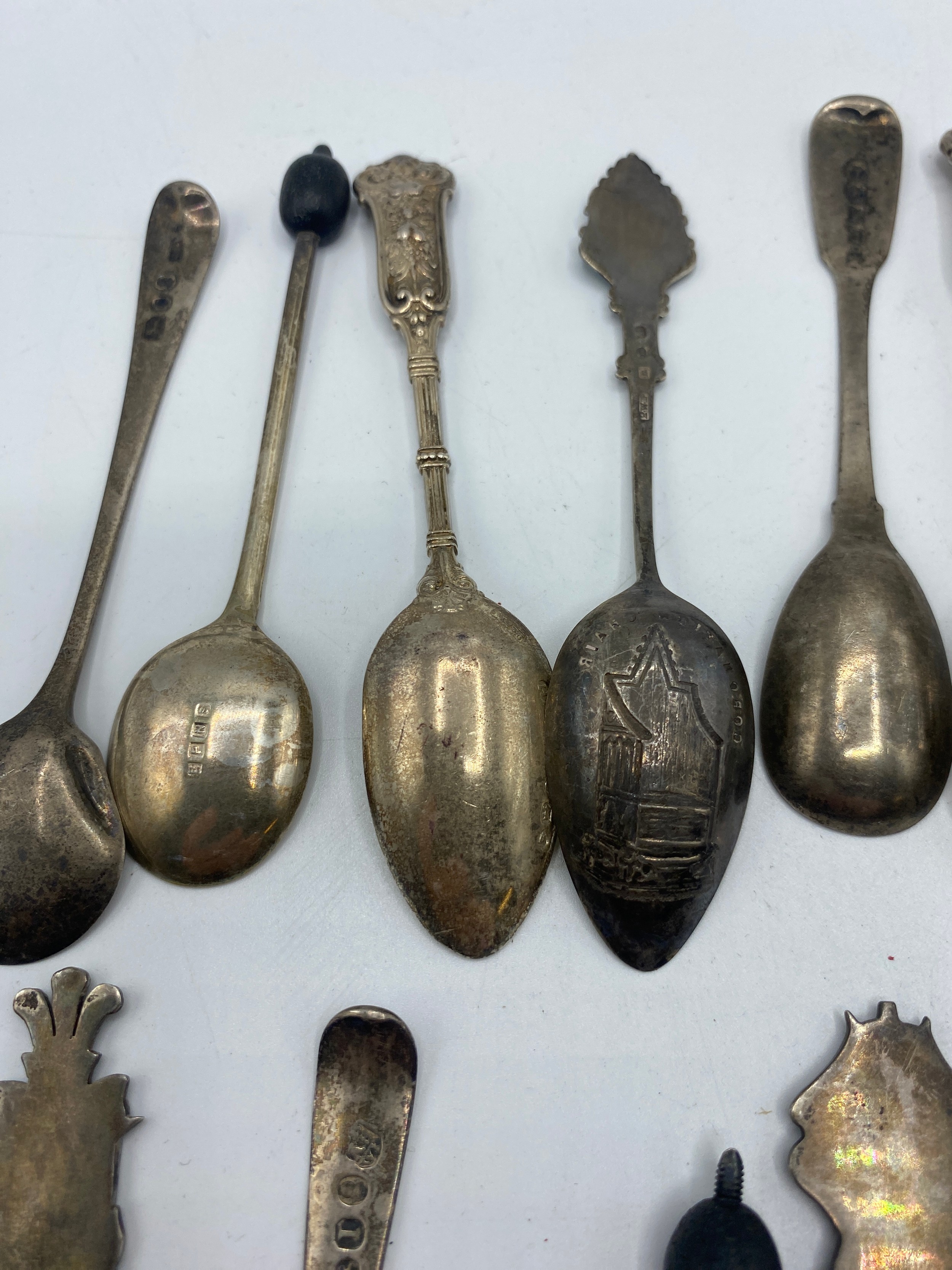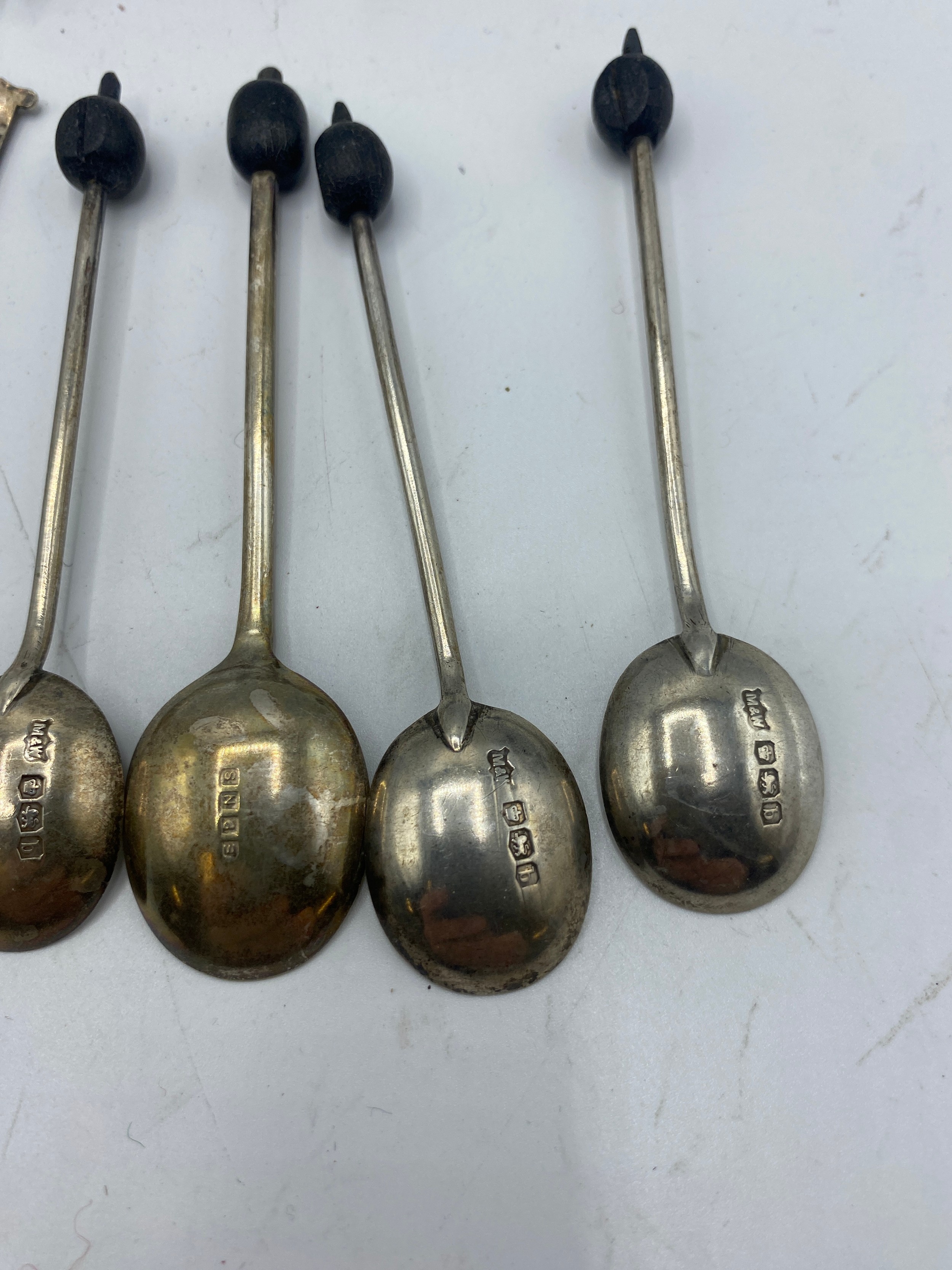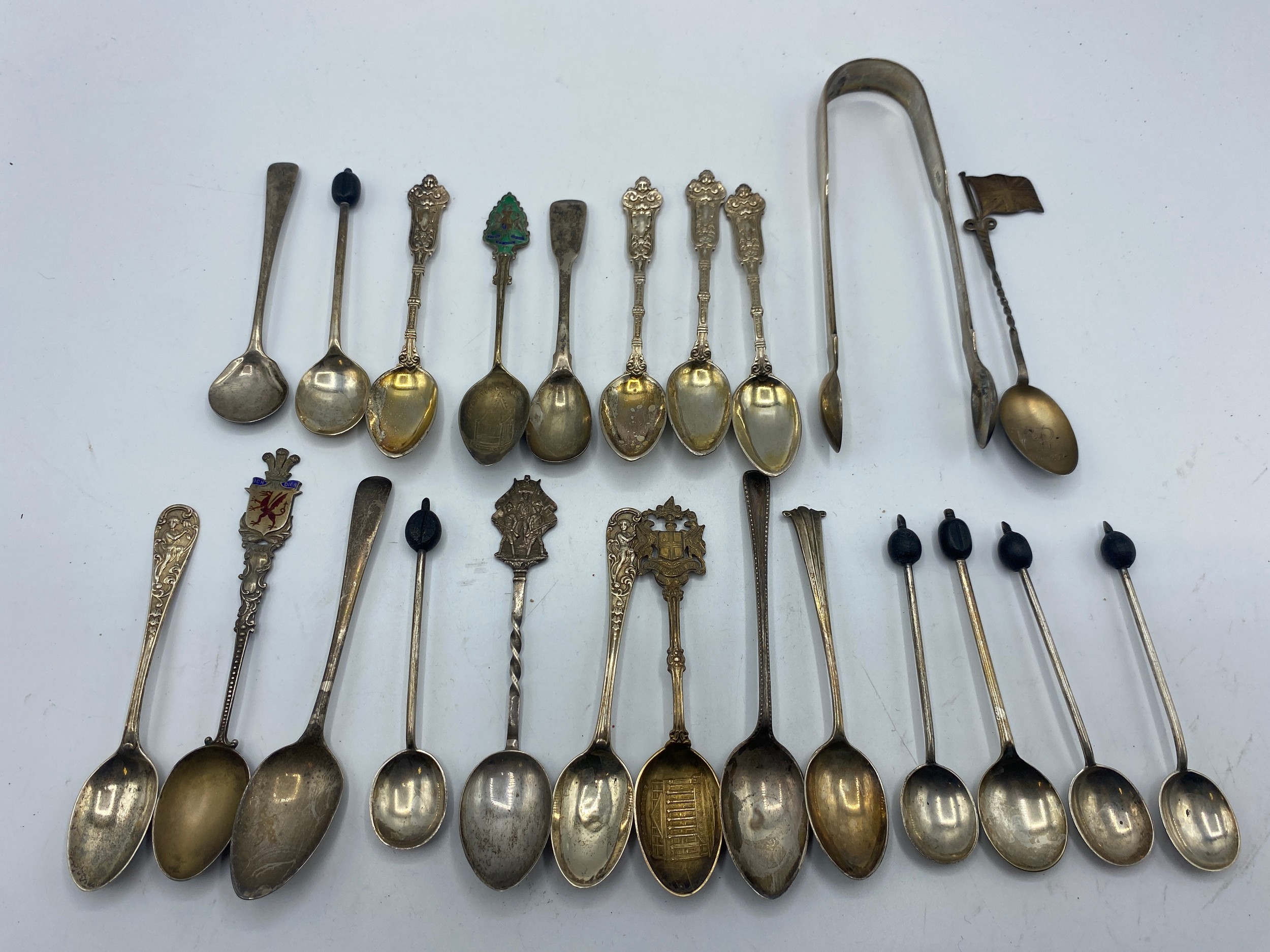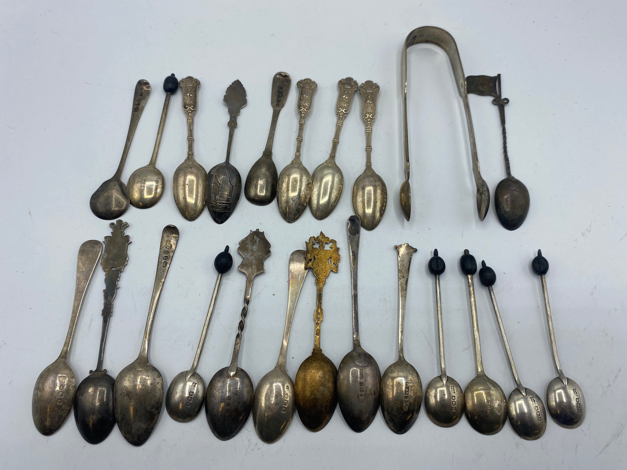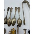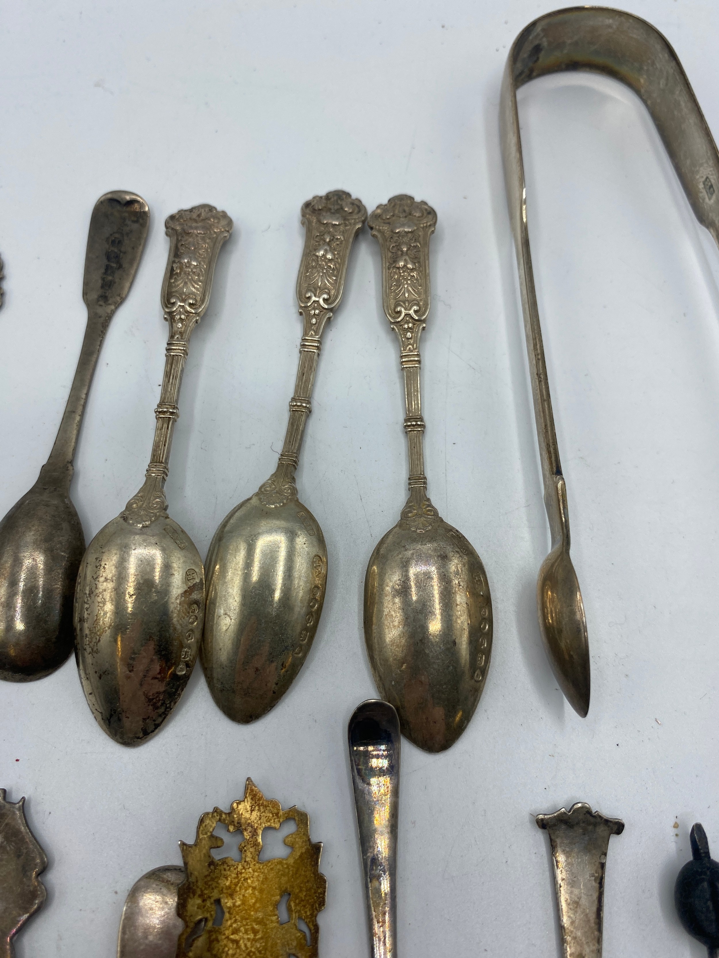 Collection of sterling cutlery items to include coffee spoons with bean finials, sugar tongues etc. 317 g gross weight