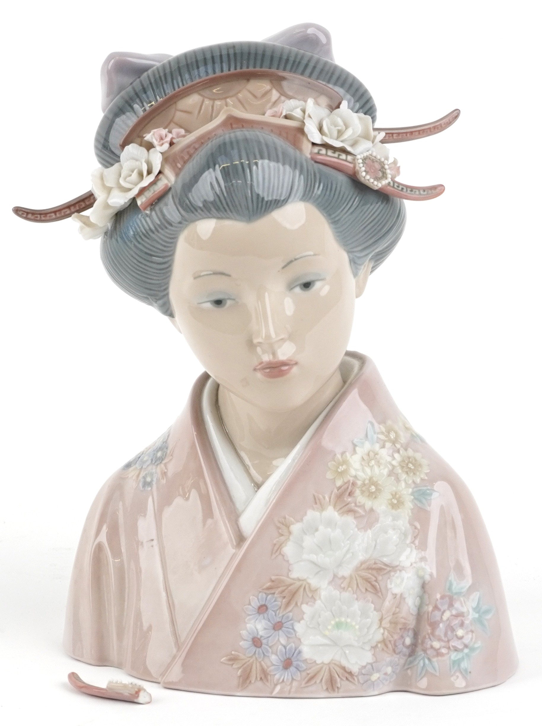 One piece of the head dress is broken off as per the online images, there are small losses to some of the flowers