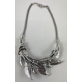 QUALITY! BOUTIQUE bought from YORK a Substantial handmade white metal TORQUE in leaf form with a nice sparkly white stone - width 13cm