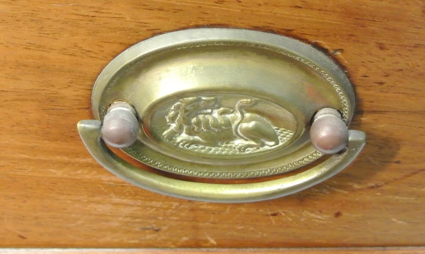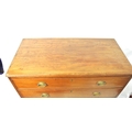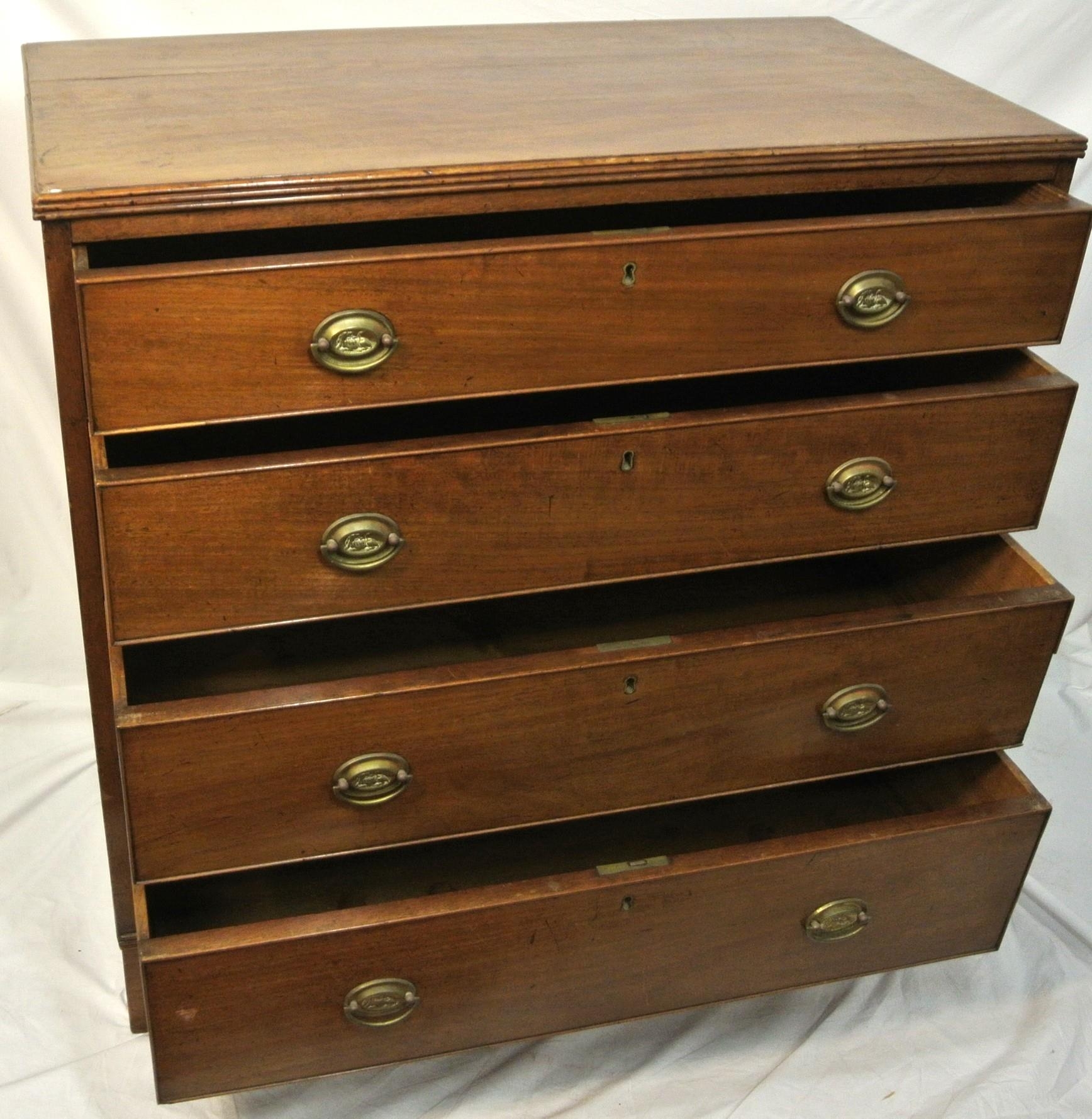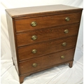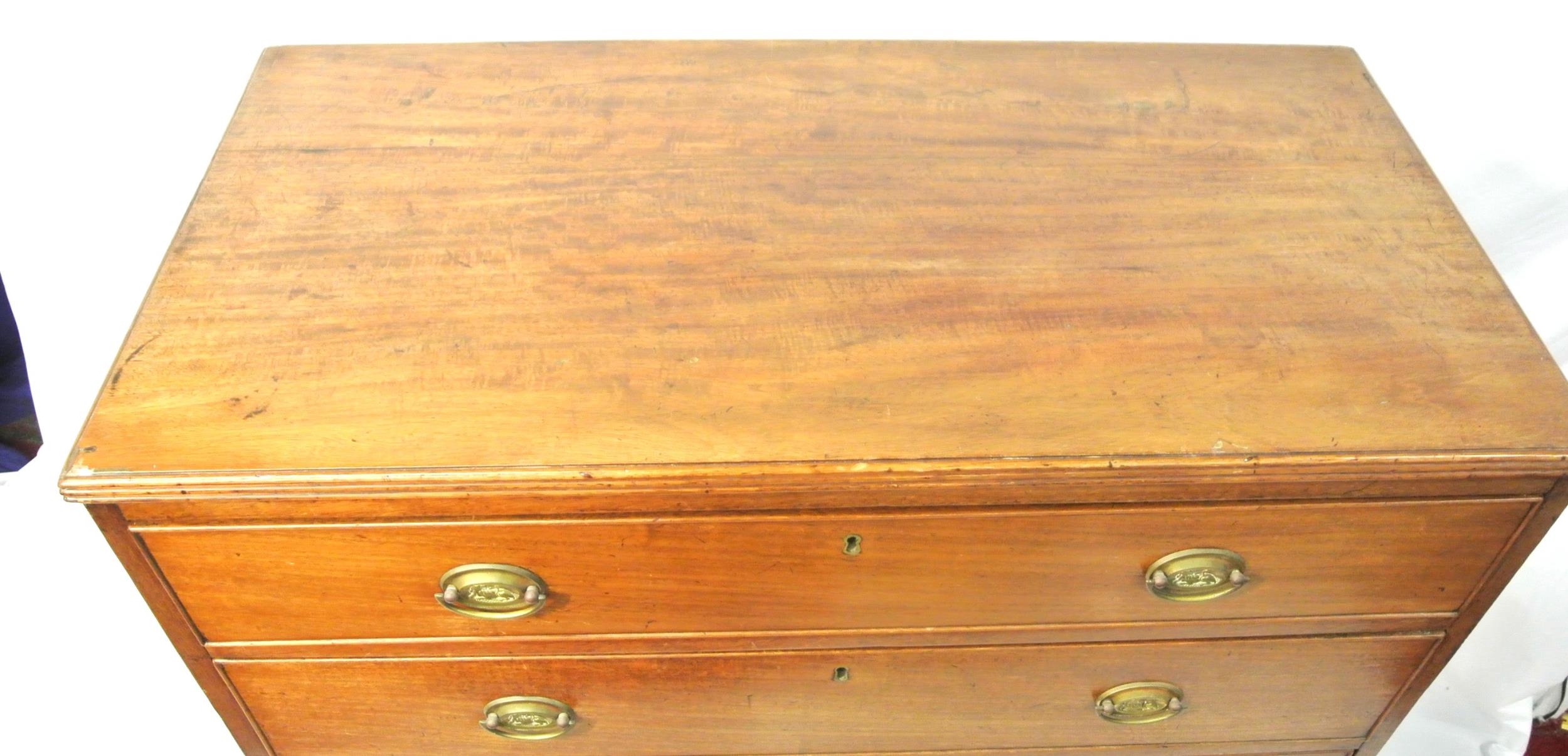 Edwardian mahogany chest of four drawers with oval brass drop handles, reeded borders, on bracket feet