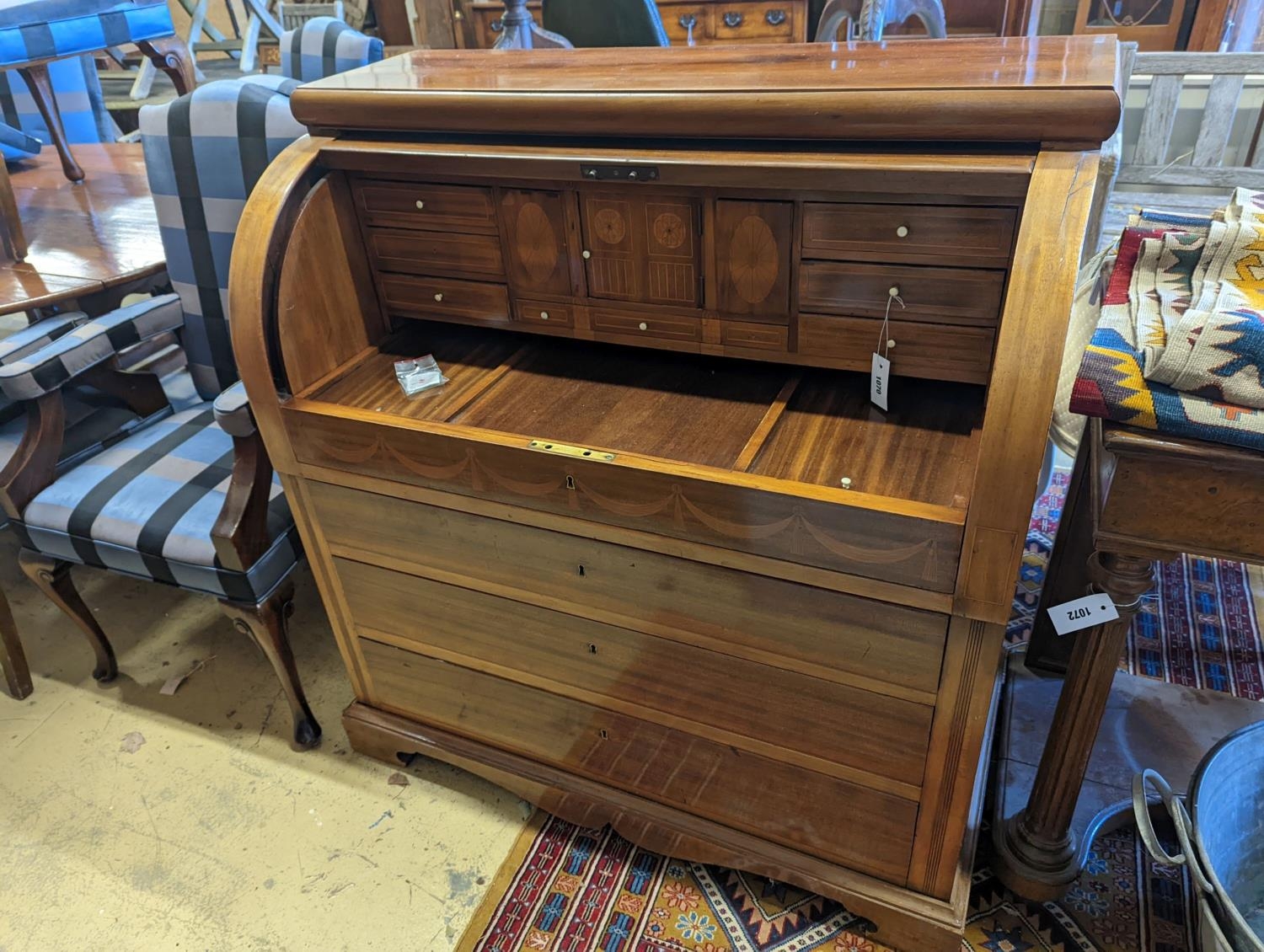 A reproduction cylinder bureau, width 110cm, depth 58cm, height 115cm